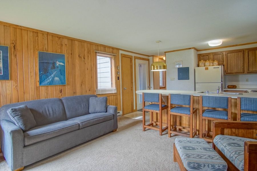 POWDERIDGE 30 - 1 BEDROOM, 1 BATH FLAT (sleeps 4) - BEDDING: Queen Bed and a Sleeper Sofa. Private Deck, Wood Burning Fireplace (wood provided), and Washer/Dryer. Slope side, Access to Powderidge Lift and the Northern Tact area of the Basin,