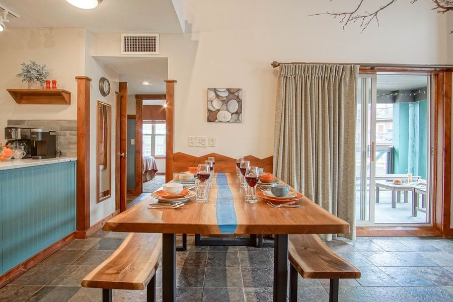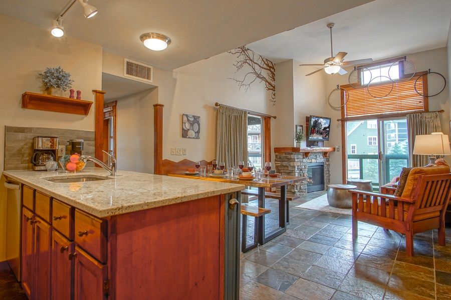 RIMFIRE 317-318 - 2 Bedroom, 2 bath sleeps 6. Private Deck - BEDDING: BEDROOM -1 - 1 King; BEDROOM -2 QUEEN AND QUEEN SLEEPER SOFA - This tastefully decorated ski-in and ski-out 2 bedroom, 2 bath condo sleeps 6. It has a full kitchen with stainless steel dishwasher, stove, and refrigerator. The living room has a gas fireplace with a sleeper sofa and 2 sliding glass doors to let in plenty of light. Set on the deck with great views of the village and enjoy concerts in the plaza. Rimfire is the perfect location for your vacation. Right in the heart of The Village, close to all the action. Enjoy a fresh cup of coffee at Starbucks, dine in one of our fine restaurants, relax in one of the hot tubs located in the complex, or walk to any of the many activities going on.
