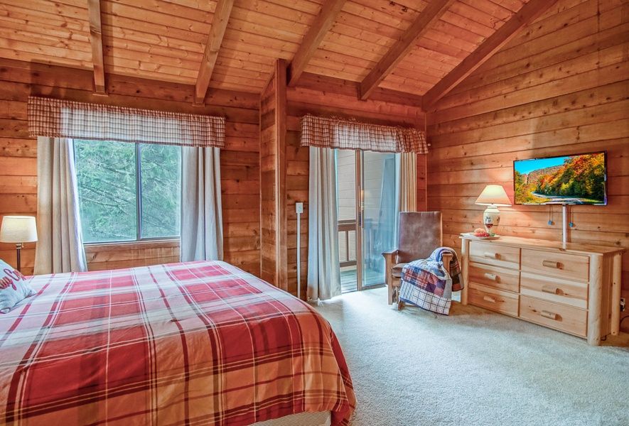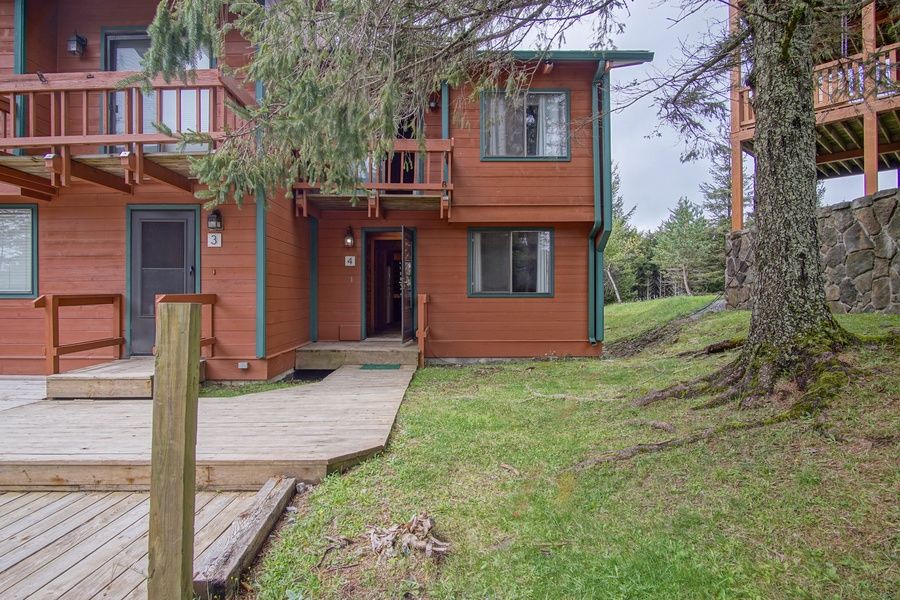 POWDER MONKEY 4 - 2 BEDROOM PLUS, 2 BATH TOWNHOUSE - BEDDING: MASTER BR: Pillowtop King Bed, TV/DVD, private full bath; BR -2: Pillowtop Queen Bed, TV/DVD, and Bonus Sleeping Loft: Pyramid Bed - Double Down, Twin Up. Two Story Townhouse. Park at your door. Located close to the Village, and Ski School. Close to novice trails at Powder Monkey make ski access easy for the kids. Across the street from Western Territory. Privacy in the trees, end unit, yet close to everything.