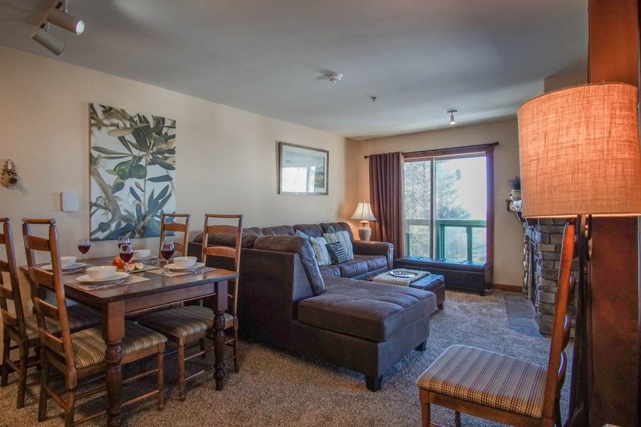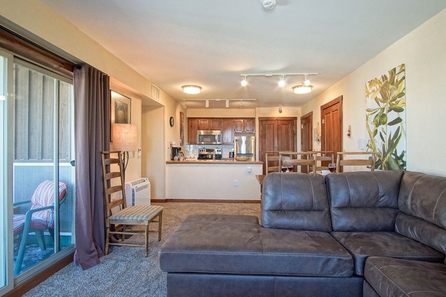 Rimfire 214 - 215- 2 Bedroom, 2 bath, sleeps 6. Private Deck- Bedding: Bedroom -1- Queen Bed; Bedroom -2-2 Twin Beds; Queen Sleeper sofa. This tastefully decorated ski-in and ski-out 2 bedroom, 2 bath condo sleeps 6. It has a full kitchen with stainless steel dishwasher, stove, and refrigerator. The living room has a gas fireplace with a sleeper sofa and 2 sliding glass doors to let in plenty of light. Set on the deck with great views of the village and enjoy concerts in the plaza. Rimfire is the perfect location for your vacation. Right in the heart of The Village, close to all the action. Enjoy a fresh cup of coffee at Starbucks, dine in one of our fine restaurants, relax in one of the hot tubs located in the complex, or walk to any of the many activities going on.