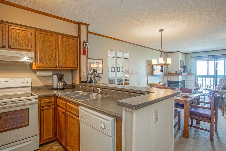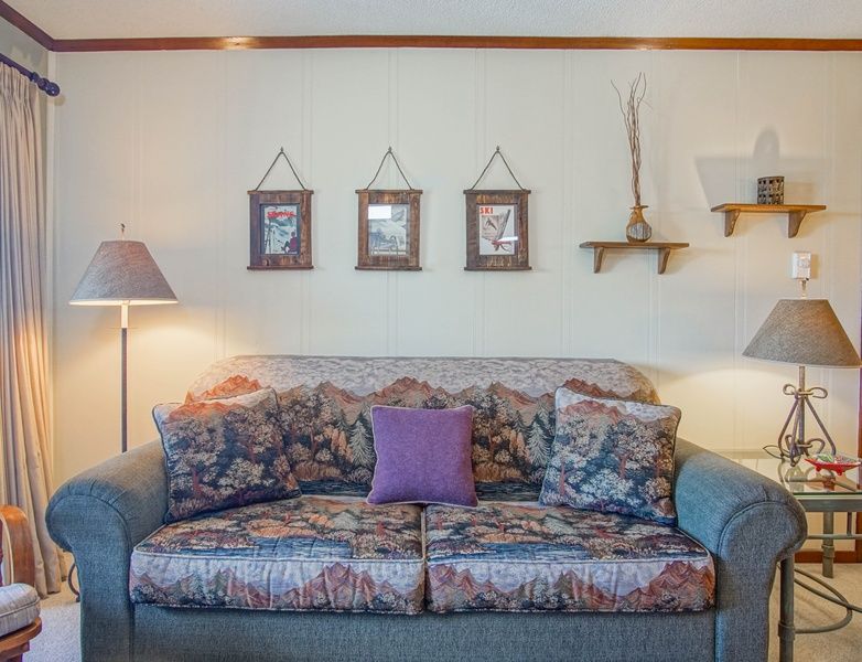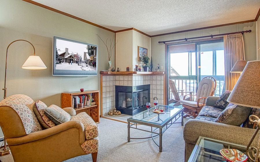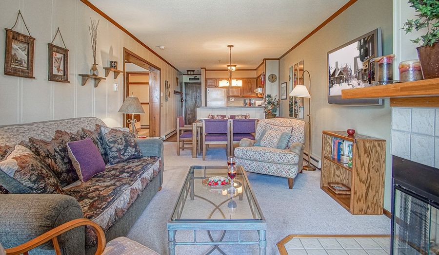 SNOWCREST 214A - 2 BEDROOM, 2 BATH (sleeps 6) - BEDDING: Queen Bed in each bedroom with a sleeper sofa bed in living room. Electric Fireplace, Balcony, Complex Hot tub. Within walking distance of Soaring Eagle Express Lift and slopes and Full Rental Shop.