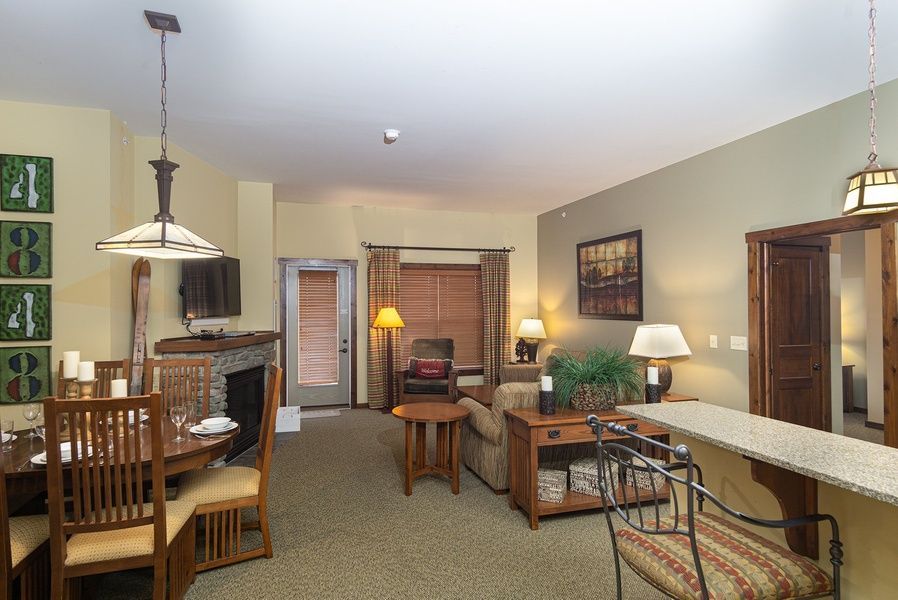 BUILDING AMENITIES: Free WiFi, Free Long Distance Calling, Air Conditioning, Underground Heated Parking Garage, Deck / Balcony, Elevators, Hearth Room with Fireplace, Fitness Room, Jacuzzi on the patio terrace, Free Resort Shuttle Service, Bike Friendly Lodging, Ski Storage Lockers, Restaurant and Bar on Site (Seasonal), and On-Site Laundry Facility. The complex has stunning views, adjacent to the Soaring Eagle Express Lift. Located about a mile from Snowshoe Village, and is well connected to trail systems for bicycling, hiking, and walking.