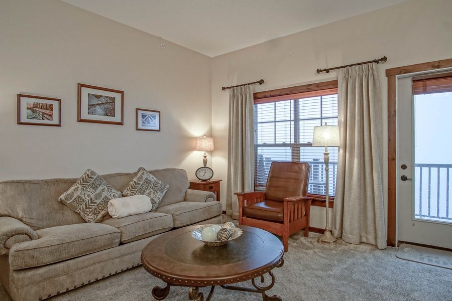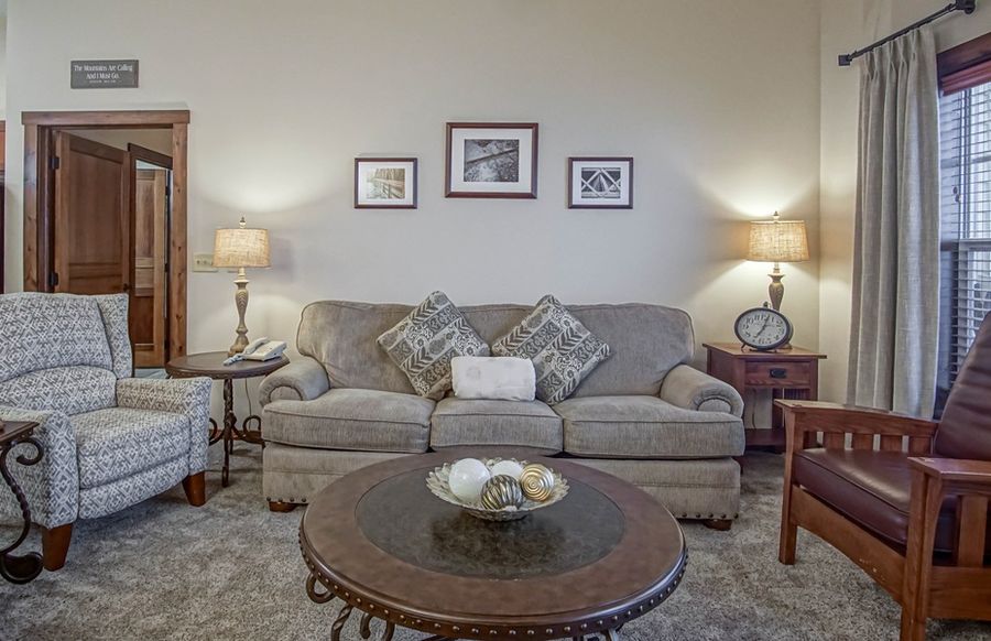 SOARING EAGLE 402 - 2 BEDROOMS, 2 BATHS - BEDDING: MASTER Pillowtop King Bed, flat screen TV, private bath with oval soaking tub, and separate shower, BR 2 Pyramid Bunk Bed (double down/twin up), plus another twin bed. Big flat screen TV with BluRayDVD. Their own private full bathroom. Gas Fireplace and Washer/Dryer. PLUS: Queen sofa bed in Living Room. 50" flat screen TV/DVD.