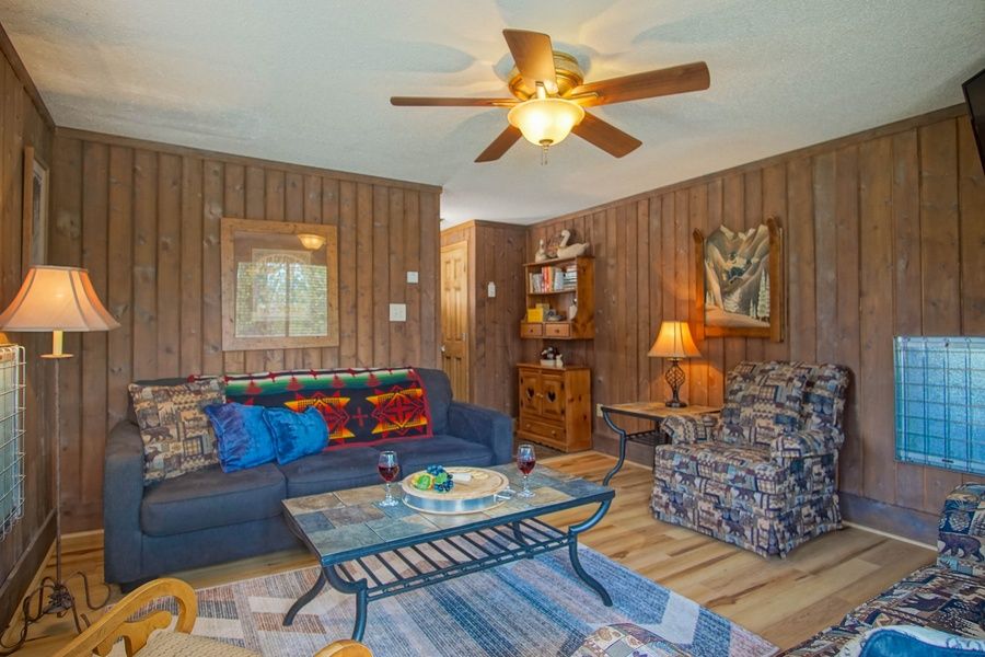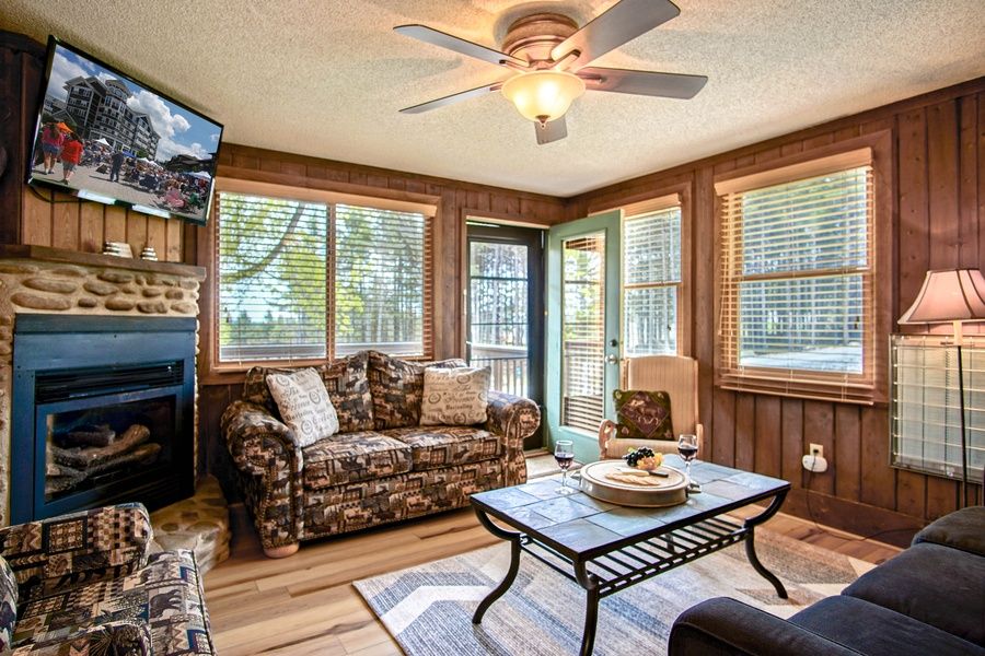 TREETOP 19 - 2 BEDROOM, 2 BATHS (sleeps 8) - BEDDING: Master BR Queen, BR 2 Trundle Bed and a Twin, and a Queen Sleeper Sofa. Enter through the mudroom, you have a full kitchen and dining room. Towards the back of the unit is your living area with a gas fireplace and a door leading to your deck. Upstairs are the bedrooms. During the summer play, games in the backyard and have a picnic. The townhome has a washer/dryer, dishwasher, gas fireplace, TVs, DVD/VCD, and a deck with furniture.