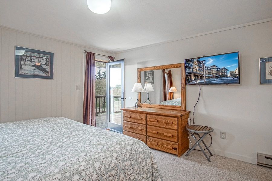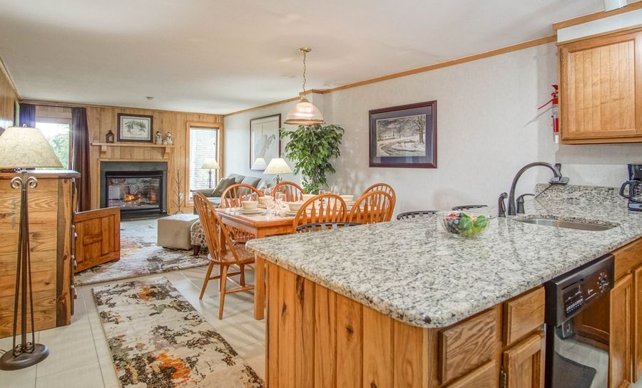 POWDERIDGE 17 - 2 BEDROOM, 2 BATHS FLAT (sleeps 6) - BEDDING: BR 1 King, BR 2 Queen. Sleeper Sofa Gas Fireplace, Private Deck, Washer/dryer, Dishwasher, TVs, DVD/VCR, Slope Side, and Balcony. The flat is located on the lower level and has a fully equipped kitchen with a microwave, dishwasher, full sized refrigerator.