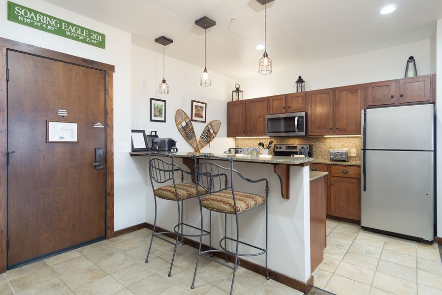 SLOPE SIDE Soaring Eagle is located about a mile from Snowshoe Village and is well connected to trail systems for bicycling, hiking, and walking.
