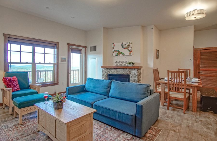 SOARING EAGLE 403 - 2 BEDROOM, 2 Full Bath. - BEDDING: MASTER: King, 50" Smart TV, BEDROOM 2 Queen and Bunk with trundle, 42" Smart TV. Full Kitchen with a double oven, and Gas Fireplace. Large 65' TV located in the living room for Family entertainment. The unit does have a washer and dryer.