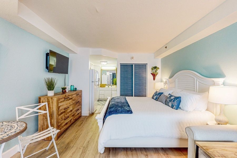 Cozy Oceanfront Escape at Daytona Beach Resort Step inside “You and Me By The Sea,” a bright and breezy oceanfront studio, where golden sands and spectacular sunrise views are just an elevator ride away. Perfect for couples or small families, this updated unit offers a peaceful coastal retreat with modern comforts, a private balcony, and instant beach access. Whether you're sipping coffee with the sea breeze on the balcony or walking to nearby shops and eateries, everything about this stay is designed for relaxation and ease. - 1 Bedroom - 1 Full Bathroom - Kitchenette - Sleeps 4 - Private oceanfront balcony with sunrise views - Walkable to dining, shops, and beachfront entertainment - Access to resort-style pools, hot tub, and fitness center - Plush king bed + twin sleeper sofa for extra guests ️ Comfortable Coastal Sleep and Space The studio layout is thoughtfully arranged with cozy textures, beachy tones, and natural light pouring in from the balcony sliders. Sleep soundly in a king-size bed with a luxury pillow-top mattress, or convert the twin-size sofa for additional sleeping space. - 1 King bed + 1 twin sleeper sofa - Sleeps 4 comfortably - 1 full bathroom + linens and essentials provided - Easy flow studio layout with space to relax and unwind Right on the Beach – Central Daytona Access This beachfront building puts you front and center for everything Daytona Beach has to offer — from quiet morning walks in the sand to energetic boardwalk nights. - Direct beach access just steps from your door - Minutes from Daytona Boardwalk, Pier and Ocean Walk Shoppes - Quick drive to Daytona International Speedway and Peabody Auditorium - Central to events, attractions, and festivals year-round ️ Kitchenette Convenience for Easy Meals Skip the overpriced resort snacks! Your in-unit kitchenette is fully stocked with essentials so you can prep light meals or beach bites at your own pace. - Full-size fridge with ice maker - Stove, microwave, and basic cookware - Coffee maker for beachside mornings - Dining nook with ocean views Stay Connected and Comfortable Whether you’re working remotely or streaming your favorite shows, you’ll have everything you need to stay connected and relaxed. - High-speed WiFi throughout the unit - Cable TV for entertainment - Air conditioning for perfect indoor temps - Elevator access for added convenience Resort-Style Amenities Just for You Take your pick of on-site amenities designed to help you make the most of your beach vacation without ever leaving the property. - Indoor and outdoor pools (subject to seasonal availability) - Hot tub and oceanfront lounging areas - Fitness center and basketball court -Laundry facilities on-site ️ Explore Daytona’s Best Nearby Attractions Beyond the beach, Daytona offers a mix of laid-back coastal charm and action-packed adventures: - Ocean Walk Shoppes – dining, shopping, and live music - Daytona Lagoon – waterpark fun for all ages - Daytona International Speedway – thrilling race experiences - Peabody Auditorium – live shows and performances Why Guests Love It “The ocean view was beautiful — we watched the sunrise from bed!” “The room was adorable and had everything we needed.” “We walked the beach every morning and enjoyed sitting on the balcony in the evenings.” “Great location close to everything but still quiet and relaxing.” House Rules and Other Considerations Simple, Friendly Guidelines so it's easy to relax and enjoy your stay. - No pets or smoking - Must be 25+ to book - Free parking on-site (1 vehicle) - Self check-in with smart lock - Rental agreement and ID verification required Casago - New Smyrna Beach has engaged VacayHome to ensure this listing contains all the information you need and that it is easy for you to book via search engines & online channels. VacayHome is connected directly to the property management system used by Casago - New Smyrna Beach which ensures that availability & rates are up-to-date & accurate. When you book, VacayHome processes payment on behalf of Casago - New Smyrna Beach and a charge will appear on your statement as "VacayHome". VacayHome will send you a confirmation e-mail that contains all the information you need to prepare for your vacation including arrival instructions. VacayHome has a 24 x 7 team to assist you with any questions or concerns you may have prior to arrival. To access VacayHome, obtain the customer support telephone number or read FAQs, please click on the links at the bottom of this page.