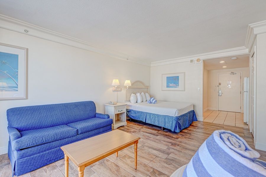 Sun, Sand and Studio Views – Just an Elevator Ride from the Beach! Welcome to Daytona Beach Resort 819. This oceanfront studio is a laid-back, affordable escape with everything you need for beach days, boardwalk adventures, and restful nights. You’ll love the unbeatable location — mere steps from golden sands, with dining, shopping, and attractions all within reach. Whether you're sipping coffee with an ocean view or walking to the pier for sunset drinks, this cozy studio sets the scene for your ultimate Daytona getaway. - Studio - 1 Full Bathroom - Kitchenette - Sleeps 3 - Oceanfront location just minutes to the boardwalk & pier - Cozy queen bed + twin sleeper for flexibility - Full-size fridge, microwave, and stove for easy meals - Executive pillow-top bed + fast WiFi for work or play ️ Cozy, Clean and Ocean-View Comfort Settle in after a day in the sun with a plush queen bed and a convenient twin sleeper — perfect for solo travelers, couples, or a small family. The space includes a private bathroom, cozy seating area, and everything you need to recharge. - 1 queen bed + 1 twin sleeper sofa - Sleeps up to 3 guests comfortably - 1 full bathroom + linens and essentials provided - Balcony with peek-a-boo ocean views Oceanfront Convenience with Resort-Style Perks Located directly on Daytona Beach, this unit offers easy beach access and walkability to local favorites. Please note: as of now, some shared resort amenities like the pool and restaurant are closed pending repairs. - Walk to Ocean Walk Shoppes and Daytona Lagoon - Minutes to the Boardwalk, Bandshell and nightlife - Elevator access + shared resort building - Fitness room available during stay ️ Simple Kitchenette for Quick Bites and Beach Snacks While small, the kitchenette packs convenience — ideal for beach picnics or casual in-room dining. - Full-size fridge with ice maker - Microwave, stove, and basic cookware - Coffee maker for your morning brew - Dining nook with table and chairs Stay Connected with Fast WiFi and a Quiet Work Nook Need to sneak in a few emails before beach time? The fast WiFi and peaceful atmosphere make remote work a breeze. - High-speed internet throughout the unit - Comfortable table for laptop use - Quiet surroundings (except hallway noise — bring earplugs if sensitive) Entertainment and Essentials Unwind with cable TV or stream your favorites after a long day in the sun. - TV with cable included - Comfortable sofa seating - Air conditioning for climate comfort - On-site laundry for longer stays ️ Nearby Fun, Food and Florida Sunshine You’re in the heart of Daytona Beach — close to iconic landmarks, delicious eats, and outdoor activities. - Daytona Beach Boardwalk – shops, rides, and seaside eats - Ocean Walk Shoppes – unique boutiques and entertainment - Peabody Auditorium – catch a live show or concert - Daytona International Speedway – just a short drive away - Beachfront biking, paddleboarding, and eco tours nearby Why Guests Love It "The view of the water and how close to the beach we were." "Clean room, convenient to everything, and quiet at night." "Loved the location and the area — will add to our favorites!" House Rules and Other Considerations Simple, Friendly Guidelines so it's easy to relax and enjoy your stay: - No smoking or pets - Must be 25+ to book - Free parking on-site (garage access may vary) - Balcony access + elevator - Rental agreement and ID verification required - Self check-in with smart lock or access code Casago - New Smyrna Beach has engaged VacayHome to ensure this listing contains all the information you need and that it is easy for you to book via search engines & online channels. VacayHome is connected directly to the property management system used by Casago - New Smyrna Beach which ensures that availability & rates are up-to-date & accurate. When you book, VacayHome processes payment on behalf of Casago - New Smyrna Beach and a charge will appear on your statement as "VacayHome". VacayHome will send you a confirmation e-mail that contains all the information you need to prepare for your vacation including arrival instructions. VacayHome has a 24 x 7 team to assist you with any questions or concerns you may have prior to arrival. To access VacayHome, obtain the customer support telephone number or read FAQs, please click on the links at the bottom of this page.