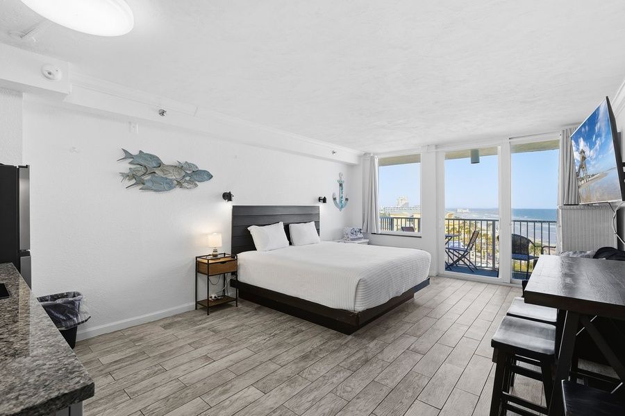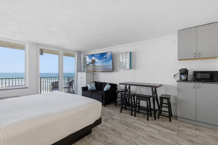 Oceanview Escape with Balcony Bliss Step into serenity at Harbour Beach Resort 618 — a bright oceanfront studio condo designed for peaceful getaways. Greet the day with sweeping Atlantic views from your private balcony, just steps from the beach and a short walk to Daytona's iconic Boardwalk and Pier. Inside, unwind in a cozy, coastal-inspired space perfect for two. Whether you're sipping morning coffee with sea breezes or streaming movies as the sun sets over the water, this condo invites you to fully relax, recharge, and enjoy every salty-sweet moment. - Studio - 1 Full Bathroom - Kitchenette - Sleeps 2 - Oceanfront balcony with direct views of the Atlantic - Walk to Daytona Boardwalk, Main Street Pier and beach attractions - Resort-style amenities: pool, hot tub, game room and gym - Perfect for couples or solo travelers seeking a peaceful retreat ️ Space and Sleeping Arrangements This efficient studio layout includes a plush king bed, cozy seating area, and wall-mounted TV — all perfectly arranged to keep the ocean in view. - 1 king bed with fresh linens and comfy pillows - Full bathroom with shower/tub combo - 1 full bathroom + linens and essentials provided - Smart TV for streaming and cable entertainment Location Features Beachfront living at its best! You’re located directly on the sand and just minutes from everything Daytona Beach is known for. - Oceanfront building with private balcony views - Elevator access for ease of entry - Walkable to shops, restaurants, and nightlife - Close to Congo River Golf, Angell and Phelps Chocolate Factory and more ️ Kitchen Details Enjoy the freedom to whip up light meals or beach-day snacks in your well-equipped kitchenette. - Mini fridge, stovetop and microwave - Toaster oven and basic cookware - Coffee maker for sunrise sipping - Ideal setup for short stays or romantic escapes WiFi and Workspace Stay connected while you unwind. - Complimentary WiFi throughout the condo - Compact table for dining or laptop work - Ideal for remote workers or digital nomads seeking an ocean view Entertainment When you're not beach lounging, there’s plenty to enjoy on-site. - Resort-style pool and bubbling hot tub - Indoor game room with ping-pong and pool table - Flat-screen TV with streaming apps - Oceanfront views from your pillow ️ Nearby Activities and Restaurants Daytona is packed with coastal charm, adventure, and delicious eats. Here are some must-visits: - Main Street Pier and Daytona Boardwalk – iconic fun and live music - Congo River Golf – mini golf meets tropical adventure - Angell and Phelps Chocolate Factory – a sweet, local experience - Andy Romano Beachfront Park – perfect for a picnic or stroll - Daytona Lagoon – waterpark fun just a short drive away Why Guests Love It "We woke up to the most incredible ocean views every day." "The location couldn’t be better – walkable to everything but still peaceful." "So clean, cozy, and perfect for a beach weekend. Loved the balcony!" House Rules and Other Considerations Simple, friendly guidelines so it's easy to relax and enjoy your stay: - No smoking or pets - Must be 25+ to book - 1 parking space included (may be limited due to construction) - Ongoing building maintenance through Dec 2025 (painting/windows) - Self check-in via smart lock - Rental agreement and ID verification required Casago - New Smyrna Beach has engaged VacayHome to ensure this listing contains all the information you need and that it is easy for you to book via search engines & online channels. VacayHome is connected directly to the property management system used by Casago - New Smyrna Beach which ensures that availability & rates are up-to-date & accurate. When you book, VacayHome processes payment on behalf of Casago - New Smyrna Beach and a charge will appear on your statement as "VacayHome". VacayHome will send you a confirmation e-mail that contains all the information you need to prepare for your vacation including arrival instructions. VacayHome has a 24 x 7 team to assist you with any questions or concerns you may have prior to arrival. To access VacayHome, obtain the customer support telephone number or read FAQs, please click on the links at the bottom of this page.