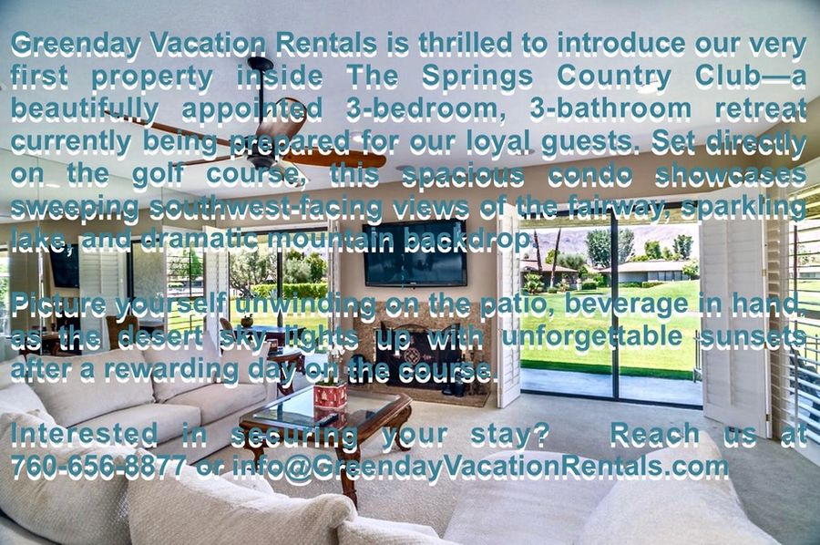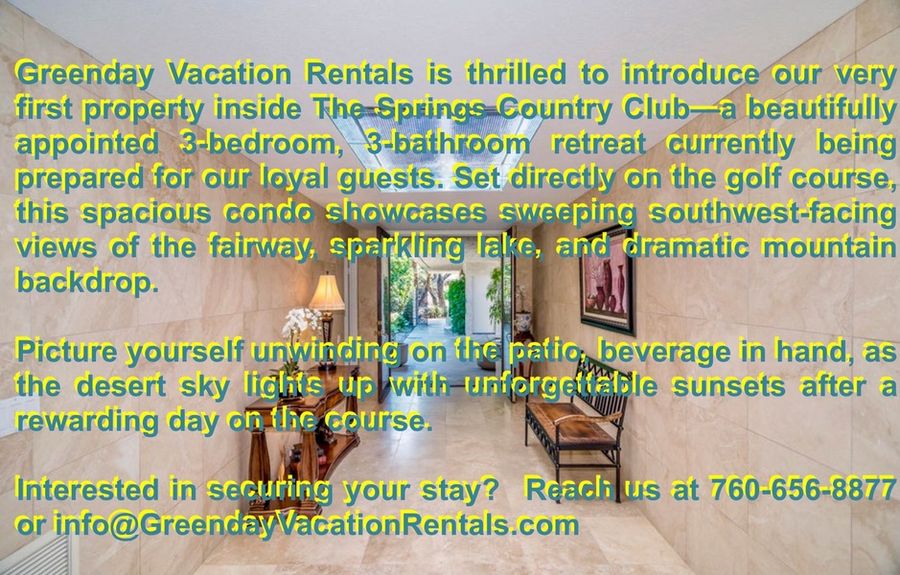 Welcome to the Harvard Hideaway, a sun-splashed, southwest-facing retreat inside the prestigious The Springs Country Club. With 3 bedrooms, 3 baths, nearly 3,000 square feet of open living space, and wraparound fairway, lake, and mountain views, this home delivers classic Palm Springs living with all the comfort of a private resort.