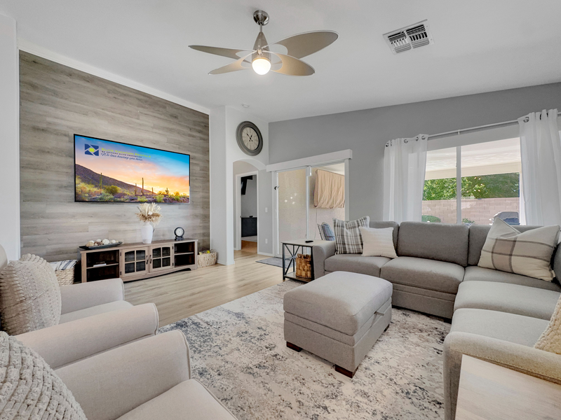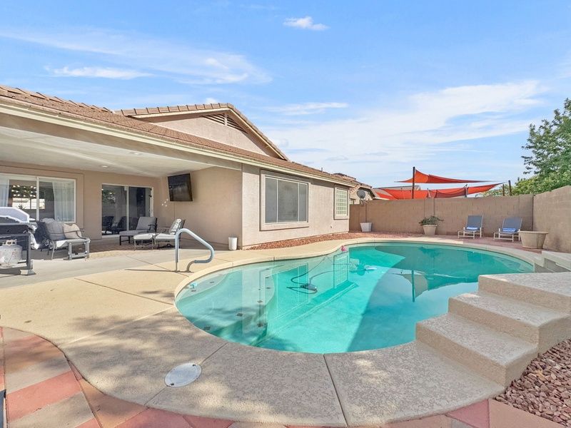 Discover your dream escape presented by Elite Vacation Rentals 153rd Surprise, nestled in the vibrant Rancho Gabriela community of Surprise, Arizona. This stunning single-level home features a spacious split floor plan, expertly designed to accommodate families and groups, with a maximum capacity of 10 guests, making it an ideal getaway for those seeking both comfort and style. Boasting four beautifully appointed bedrooms, including a luxurious king suite and two queen rooms, this home ensures restful nights. The bunk bed room adds a fun touch for guests of all ages, while the two modern bathrooms provide all the conveniences you need. Step outside to enjoy the breathtaking pool view, featuring a heated private pool surrounded by sun loungers—perfect for soaking up the Arizona sun! The outdoor space is complemented by a BBQ grill and a charming deck for entertaining moments. Indoors, you’ll find a lively game room equipped for entertainment with a pool table and arcade games, promising fun-filled evenings. Additional amenities include high-speed Wi-Fi, a fully stocked kitchen with modern appliances, air conditioning, and laundry facilities. For families, there's a highchair/pack and play and toys available, ensuring that every need is met. Located just minutes away from local attractions, including golf courses, hiking trails, and the lively local historic district, 153rd Surprise offers the perfect balance of relaxation and adventure. Whether you're here for a family vacation or a fun getaway with friends, this property stands out as a premier choice. Don’t miss out on the opportunity to book your stay at 153rd Surprise—a delightful retreat that you’ll want to revisit time and time again! Golf, golf, and more golf. All around you are some of the best courses that Surprise and the Phoenix Metro Area has to offer. Host a client, tee off with a group of friends or just enjoy the stunning beauty of the green grass and desert landscape surrounding you. Come for business or leisure for world-class events such as The Barrett-Jackson Collector Car Auction, MLB Spring Training Baseball or The Phoenix Open. Minutes from Casinos and the MLB Spring Training field of the Texas Rangers. This is your spot to call your own while enjoying these or many other events. Sorry no pets. Elite Weather Pool Heater Guarantee: Splash. Thinking of booking October 15-April 15? The weather in Arizona can be quite volatile this time of year. There may be soaring heats over 100 degrees or temps that can drop below 50 degrees. This home is equipped with a gas pool heater. Should you want the pool heated, please book with that option now. As your reservation date approaches, should you find the temps heading below 50 degrees you can make a final decision if you wish the pool to be heated based on weather conditions. We can refund the pool heat fees should you be concerned about not being able to enjoy this amenity as intended. This pool is equipped with a heated pool and pool heating is optional. The cost for pool heat is USD70.20 per day. Should the home be equipped with a spa or hot tub, the cost to heat the spa or hot tub is included in the rental amount year round. City Code Enforcement: As part of our commitment to being good neighbors, occupancy limits and quiet hours (9pm-8am) are strictly enforced. No speakers or sound systems are provided. Violation of any noise ordinances may result in fines of up to USD10,000 per violation. Events or parties are not allowed without prior written approval and an additional fee. Unauthorized events will be shut down and fines will be assessed. Please inquire for event policies and fees. Accidental Damage Protection: A non-refundable accidental damage protection plan is included in the price of your reservation. You will not be responsible for accidental damage or loss to the property up to USD3,000. This plan does not cover intentional acts, gross negligence, or damages caused by pets. This is a smoke-free property. Violation of the no-smoking policy will result in forfeiture of the security deposit, a USD300 smoking fee, and liability for damages. Air Conditioning: Please note A/C cannot be set below 70 degrees to avoid freezing the system. For stays over 30 nights, an electricity cap applies and is outlined in your rental agreement. 24/7 Guest Support: We’re always available by text or phone and provide 24-hour concierge service to make your stay seamless. We report and prosecute all credit card fraud. Arizona Transaction Privilege License : Let us welcome you to your unforgettable Surprise escape. Elite Vacation Rentals has engaged VacayHome to ensure this listing contains all the information you need and that it is easy for you to book via search engines & online channels. VacayHome is connected directly to the property management system used by Elite Vacation Rentals which ensures that availability & rates are up-to-date & accurate. When you book, VacayHome processes payment on behalf of Elite Vacation Rentals and a charge will appear on your statement as "VacayHome". VacayHome will send you a confirmation e-mail that contains all the information you need to prepare for your vacation including arrival instructions. VacayHome has a 24 x 7 team to assist you with any questions or concerns you may have prior to arrival. To access VacayHome, obtain the customer support telephone number or read FAQs, please click on the links at the bottom of this page.