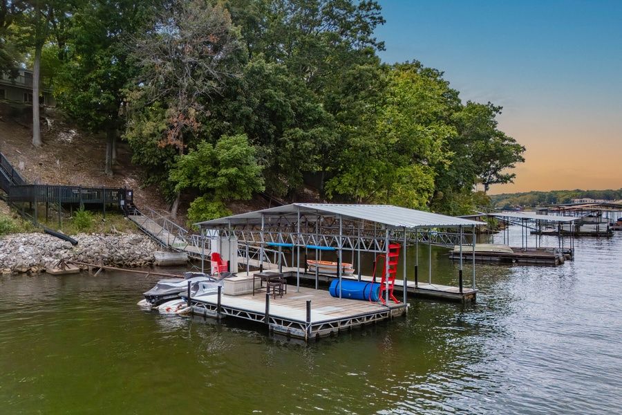 Welcome to Lakehurst Lookout, your dream lake retreat, located in Osage Beach at the 17mm. Wake up to breathtaking main-channel views, spend your days on the water with kayaks and private dock w/ boat slip, and unwind on multiple decks or in one of two spacious living rooms. This pet-friendly stay is centrally located and blends upscale comfort and convenience with versatile space for gathering, creating the perfect backdrop for cherished memories and unforgettable days spent by the lake. Great Space and Accommodations for Sleep, Dining, Gathering, and Enjoyment • Two cozy living areas with TVs, lake views, and deck access • Two spacious decks with abundant seating and dining options • Private dock with swim platform, ladder, seating, and 22 ft long boat slip • Two kayaks, swim mat, floaties, and lake toys for endless fun in the sun! • Located near the lake's favorite hot spots by both land and water! Outdoor Enjoyment at LakeHurst Lookout Unwind across two expansive decks offering generous seating and dining space—perfect for morning coffee, sunset watching, or evening gatherings overlooking the main channel. The private dock features a swim platform, ladder, seating, kayaks, a swim mat, and floaties for effortless fun on the water. With a boat slip included and smooth concrete roads leading to the home, lake days are easy and enjoyable for all. Indoor Enjoyment at LakeHurst Lookout The home offers two beautifully crafted living rooms—one near the kitchen and one on the middle level—each featuring TVs, lake views, and direct outdoor access. A cozy electric fireplace elevates the ambiance, while Roku TVs provide entertainment throughout the home, including in the master bedroom. A fully equipped kitchen makes meal prep simple, and four comfortable bedrooms with three full baths allow families and groups to gather with ease. Nearby Things to Do Located in Osage Beach near Mile Marker 17.5, guests enjoy quick access to popular restaurants, marinas, lakefront bars, and family activities. Explore shopping at Osage Beach Outlet Marketplace, waterfront dining destinations, mini-golf, state parks, live-music venues, wineries, arcades, go-karting, and championship golf courses. The central lake corridor offers convenient options for both relaxation and adventure. Other Things to Note • Propane is supplied for the grill. • Electric fireplace is operational; wood-burning fireplaces are decorative only. • Roads to the home are fully paved and easily navigable. • This property does not permit loud parties such as bachelor or bachelorette parties. Responsible and respectful gatherings are welcome. • The minimum age to book this property is 25 years old, and it is best suited for families and groups of friends. For Your Safety and Peace of Mind • A video/audio doorbell at the entry for secure access • Decibel measuring devices are installed both indoors and outdoors to maintain noise control standards • Smart lock systems for timed guest access, ensuring your safety and convenience • An interior communication panel for Z Wave connection with locks and video doorbell, without video/audio monitoring inside • Unmonitored cameras are present surrounding the exterior for liability purposes, including two cameras on the front corners of the house and one on the middle-level back deck Pet-Friendly Property Guidelines • Pet fee of USD20 per night per pet is required. This will be added with the booking or shortly after depending on where you are booking through. • Pets must be on a leash when outside and cannot be left unattended outside • Pets must be crated/kenneled when left in the home alone • Pet waste must be picked up and disposed of • Owner shall provide and utilize a “cover” (i.e. blanket/quilt) should the pet get onto furniture • Excessive hair on furniture or bedding and/or not managing pet waste can result in additional fines About Your Host LakeDays Rentals - Casago is dedicated to offering intentionally crafted lake experiences at Lake of the Ozarks. In partnership with owners who are equally committed to providing amazing vacation stays, our team prioritizes your experience, from pre-arrival inspections to personalized services. With a deep love for the lake and an insider's perspective on its hidden gems, we're here to ensure your lake vacation creates lasting memories. We're honored to serve as your hosts for an exceptional lakeside adventure. Getting There We highly recommend having a vehicle for your stay. Rideshare companies like LakeRide Pros are available, however, we recommend that you book well in advance. You will have ease of access via state highways and blacktop roads. Cancellation Standards: Any cancellation completed with a refund will have a 5 percent transaction fee for the processing of the refund. Therefore, the refunded amount will equal 95 percent of the transaction paid. Casago - Lake of the Ozarks has engaged VacayHome to ensure this listing contains all the information you need and that it is easy for you to book via search engines & online channels. VacayHome is connected directly to the property management system used by Casago - Lake of the Ozarks which ensures that availability & rates are up-to-date & accurate. When you book, VacayHome processes payment on behalf of Casago - Lake of the Ozarks and a charge will appear on your statement as "VacayHome". VacayHome will send you a confirmation e-mail that contains all the information you need to prepare for your vacation including arrival instructions. VacayHome has a 24 x 7 team to assist you with any questions or concerns you may have prior to arrival. To access VacayHome, obtain the customer support telephone number or read FAQs, please click on the links at the bottom of this page.