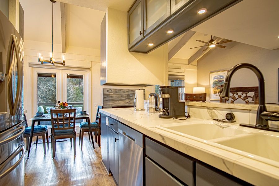 Experience your Sun Valley vacation in style at Horizons 4 Unit #124, an updated 2 bedroom, 2 bathroom condo in the heart of Ketchum, Idaho. Just a few blocks from downtown, the Wood River Bike Path, and the River Run ski lifts at Sun Valley Resort, this location offers the perfect balance of convenience and mountain charm for your dream getaway.