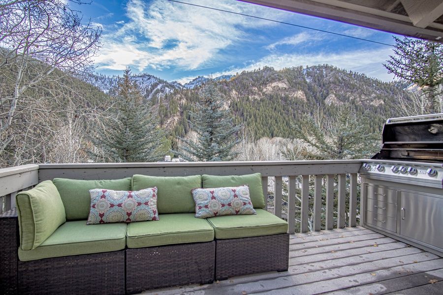 Step out onto the spacious covered deck for BBQs, alfresco dining, cocktail hours, and stunning Baldy sunsets. In the winter, it's the perfect spot to sip a hot coffee while watching the snow, and in the summer, it's ideal for stargazing and entertaining.