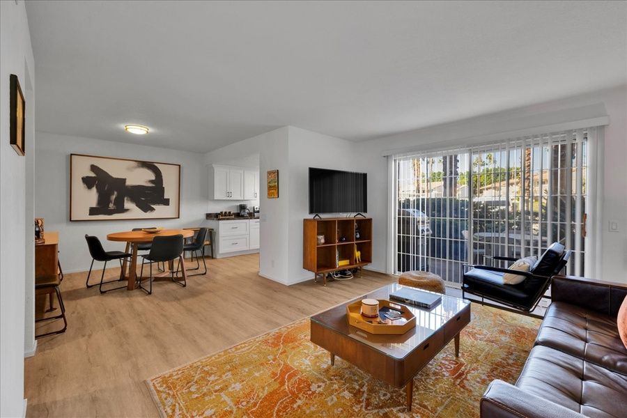 PS CITY ID TBD Welcome to your bright and stylish Palm Springs escape—perfectly located just minutes from shopping, dining, and outdoor adventure. This newly remodeled dog-friendly 1BD/1BA condo offers comfort, convenience, and classic desert charm. Highlights • Fully remodeled in 2024 with new kitchen, bathroom, flooring, and finishes • Dog-friendly home • South-facing patio with beautiful mountain views • Steps to three community pools and spas • Parking directly in front of the unit • Walking and biking trails throughout the community The Space This inviting lower-level condo has been thoughtfully redesigned with modern upgrades throughout, including a brand-new kitchen and a fully renovated bathroom. The open floor plan blends the living and dining areas seamlessly, creating a comfortable space to unwind after a day in the sun. Sliding doors on both sides of the home bring in natural light and refreshing breezes, enhancing the indoor–outdoor flow that Palm Springs is known for. Sleeping Arrangements Bedroom: Queen bed with comfortable bedding and direct access to the shaded north patio Bathroom: Newly remodeled with updated tile, fixtures, and finishes Outdoor Living Enjoy peaceful mornings or sunny afternoons on the south-facing back patio, which offers warmth, mountain views, and quick access to one of the community's resort-style pools and spas. The private north patio provides abundant shade—an ideal spot for relaxing with a book or enjoying an evening drink. Community Amenities • Three pools and spas • Beautifully manicured grounds • On-site walking and biking trails • Tennis courts Location Just minutes from downtown Palm Springs, Smoketree Village, and the area's most popular restaurants, shops, and entertainment options. Outdoor enthusiasts will love the proximity to hiking, biking, and the scenic desert landscape, while shoppers will appreciate the quick drive to Palm Springs' high-end boutiques. Summer Utility Surcharge For stays of 29 nights or longer between June 1st and September 31st, a USD500/month utility surcharge will apply to help cover the additional energy costs associated with cooling the home during the summer heat. Dog Fee Information (up to 2 dogs/stay) Stays between 2-20 nights, there is a USD89/dog/stay fee. Stays of 21 nights or more, there is a USD200/dog/stay fee. We ask that you pick up after your pet if they relieve themselves in the yard. Signs of extensive pet damage, could result in additional fees. Any signs of pets on the property without our knowledge will incur an additional USD500 fee. Sorry not feline friendly. Additional Policies & Rules • No outdoor music. Doors must be closed if playing music within the house. • 100% quiet hours outside from 10pm-10am • No smoking inside home • Renter must be 25+ years of age • Guests will sign a Ryson "Terms and Conditions" form and City Ordinances require a copy of your ID to Ryson prior to the day of your arrival. Ryson Vacations has engaged VacayHome to ensure this listing contains all the information you need and that it is easy for you to book via search engines & online channels. VacayHome is connected directly to the property management system used by Ryson Vacations which ensures that availability & rates are up-to-date & accurate. When you book, VacayHome processes payment on behalf of Ryson Vacations and a charge will appear on your statement as "VacayHome". VacayHome will send you a confirmation e-mail that contains all the information you need to prepare for your vacation including arrival instructions. VacayHome has a 24 x 7 team to assist you with any questions or concerns you may have prior to arrival. To access VacayHome, obtain the customer support telephone number or read FAQs, please click on the links at the bottom of this page.