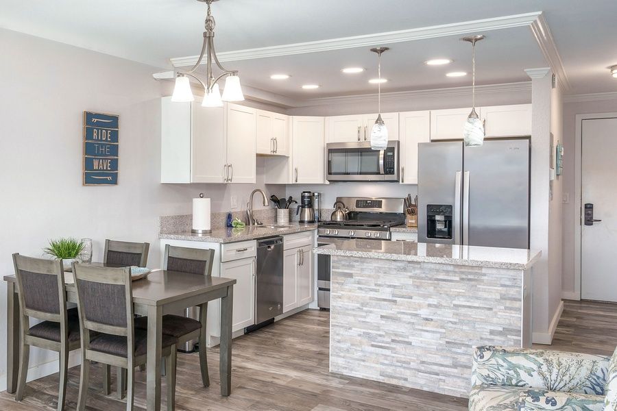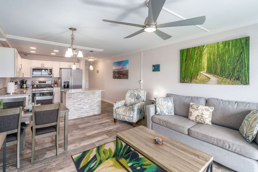 Enjoy the clean and open style of Kihei Akahi C-411, a meticulously renovated contemporary condo in South Kihei. This fully remodeled unit boasts a seamless blend of style and comfort, featuring brand-new flooring, paint, fixtures, and furnishings sourced from Maui's top designer showrooms. From the moment you step inside, you'll be greeted by a relaxed ambiance that sets the stage for your unforgettable Maui adventure. Perfectly situated just a brief one-minute stroll from the renowned Kamaole II Beach Park, this condo offers not only proximity to the beach but also a peak of ocean view from its lanai – the ideal spot for savoring your morning coffee or evening beverage as you soak in the tropical atmosphere. Kihei Akahi C-411 is ideally located on the 4th floor of Building C, ensuring a peaceful retreat amidst the vibrant South Kihei beach culture. Designed to accommodate up to four guests, this condo features an upgraded sleeper sofa in the living room, complemented by a curated selection of local art pieces that enhance its charm. The living space is thoughtfully furnished with all-new items, creating a cozy yet stylish environment for relaxation. Enjoy newly installed Split-AC, high-speed internet, upgraded cable, and a 60” Smart TV, ensuring you stay connected and entertained throughout your stay. The well-appointed kitchen is a culinary enthusiast's dream, equipped with high-quality dishware, cookware, and new full-sized stainless appliances. Whether you prefer to whip up a gourmet meal or prepare a quick island feast, this kitchen has you covered. Additionally, you can enjoy the convenience of nearby gas grills for your outdoor cooking needs. The kitchen's sparkling new cabinets and countertops are complemented by amenities like a Keurig coffee maker and blender, ensuring all your vacation needs are met. When it's time to retire for the night, the bedroom welcomes you with a beautiful Cal-King bed and a comfortable mattress. Your restful sleep is a priority in this relaxing space. Kihei Akahi C-411 offers quick access to the heart of South Kihei's beach culture. With the picturesque beach walking path just across the way and easy access to Kamaole I, II, and III beaches, you're surrounded by warm-water swimming, paddleboarding, kayaking, and vibrant snorkeling reefs. The property is conveniently located near rental shops, allowing you to gear up and explore paradise to the fullest. Plus, it's only six blocks away from the renowned Wailea resorts, adding to the allure of your Maui escape. // About the Property // Kihei Akahi in South Maui is a popular vacation rental complex located just steps from the golden sands of Kamaole Beach Park II, one of the area's top beaches for swimming, snorkeling, and sunset views. Known for its comfortable and affordable accommodations, this well-maintained property offers a variety of studios, one-, and two-bedroom condos, each featuring private lanais, fully equipped kitchens, and spacious living areas ideal for families, couples, and small groups. Guests enjoy access to two swimming pools, a tennis court, and BBQ areas for easy outdoor dining, along with beautifully landscaped tropical grounds. Kihei Akahi's prime location puts it within walking distance to South Kihei's best local dining spots, shopping options, and outdoor activities, making it a perfect home base to enjoy the vibrant beauty and laid-back lifestyle of Maui's south shore. // About the Area // South Kihei (pronounced KEY-hay) is where Maui's sun-drenched beaches meet relaxed island living. Located on the island's southwest shore, this vibrant coastal town is known for its golden sand beaches, stunning sunsets, and easygoing charm. With a wide variety of shops, restaurants, and beach parks within walking distance, South Kihei offers the perfect balance of convenience and natural beauty. It's an ideal home base for exploring nearby Wailea, snorkeling at Molokini, or simply unwinding with your toes in the sand. Whether you're seeking adventure or relaxation, South Kihei puts the best of Maui at your doorstep. // Things do do on Maui // Are you island hopping? Stop wasting time waiting at the airport and spend more time exploring all there is to see on Maui! Whether you're seeking adventure, relaxation, or cultural experiences, Maui offers more than enough to fill your itinerary and leave you wanting more. • Haleakala National Park - Breathtaking sunrise or sunsets. Hike through a volcanic crater. • Snorkel at Molokini Crater, Turtle Town, Lanai and underwater adventures just a boat ride away. • Whale Watching (seasonal) - Witness humpback whales breaching just offshore (Dec to Apr). • Sunset or Dinner Cruise - Set sail and soak in Maui's coastline from the sea. • World Famous Golf - Maui offers some of the best golf courses in the world • Helicopter Tours - See the island's hidden valleys, waterfalls, and sea cliffs from the sky. • Surf or Paddleboard - Gentle waves and expert Vacation Maui has engaged VacayHome to ensure this listing contains all the information you need and that it is easy for you to book via search engines & online channels. VacayHome is connected directly to the property management system used by Vacation Maui which ensures that availability & rates are up-to-date & accurate. When you book, VacayHome processes payment on behalf of Vacation Maui and a charge will appear on your statement as "VacayHome". VacayHome will send you a confirmation e-mail that contains all the information you need to prepare for your vacation including arrival instructions. VacayHome has a 24 x 7 team to assist you with any questions or concerns you may have prior to arrival. To access VacayHome, obtain the customer support telephone number or read FAQs, please click on the links at the bottom of this page.