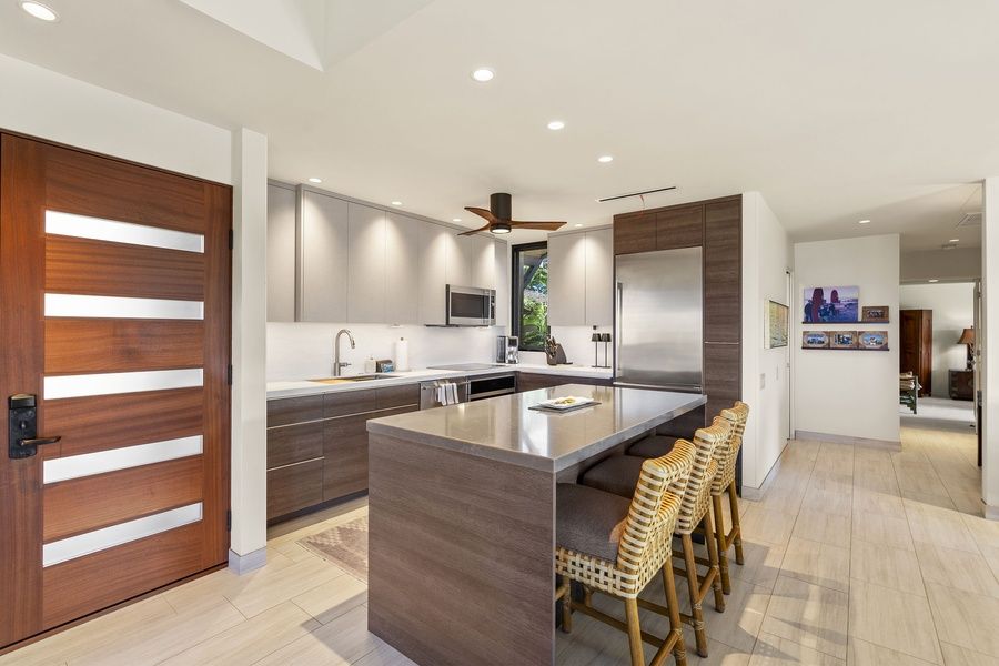 Step into island luxury at Wailea Elua 204, a meticulously designed 1-bedroom, 2-bathroom ocean view condo offering 1,085 square feet of elegant, open-concept living. From the moment you enter, you'll be captivated by sweeping panoramic views of the Pacific, framed by floor-to-ceiling glass doors that open onto your private lanai - an ideal setting for morning coffee, sunset dinners, or simply soaking in the tranquility of Wailea's coastal beauty. Inside, the fully renovated interior features a modern aesthetic with warm, natural tones and premium finishes. The updated kitchen is a chef's dream, equipped with sleek quartz countertops, custom cabinetry, and high-end stainless steel appliances. Whether you're preparing fresh island cuisine or enjoying takeout from a local favorite, this kitchen elevates every meal with style and convenience. The spacious living and dining area is thoughtfully designed for both relaxation and entertaining. Designer furnishings, contemporary lighting, and local artwork create a refined yet comfortable atmosphere. Central air conditioning and ceiling fans ensure year-round comfort, while complimentary high-speed Wi-Fi and a smart TV offer modern connectivity and entertainment options. Retreat to the generously sized primary suite, where you'll find a plush king bed, luxury linens, and direct access to the lanai. The ensuite bathroom showcases a spa-like design with dual vanities, a walk-in glass shower, and ample storage space. A second full bathroom - also beautifully updated - adds an extra layer of convenience, making this condo ideal for couples or solo travelers seeking a bit more room to unwind. Every detail at Wailea Elua 204 has been curated for a premium vacation experience. With refined interiors, expansive ocean views, and high-end upgrades throughout, this condo delivers the comfort of home with the elevated feel of a luxury retreat. // About the Property // Discover the elegance of Wailea Elua Village, a gated, low-density beachfront resort nestled along Maui's famed Ulua Beach—consistently ranked among the world's top beaches. Spanning 24 acres of immaculate tropical landscaping, this exclusive South Maui retreat features 153 luxury condos, each offering spacious lanais, gourmet kitchens, and breathtaking views of the Pacific, Kaho'olawe, Lanai, and Molokini Crater. With oceanfront pools, premier snorkeling, and direct access to the scenic Wailea Beach Path, Wailea Elua blends upscale island living with serene relaxation at the heart of Wailea. Easily walk to amazing local dining and choose from a number of beaches in the area. // About the Area // Wailea is Maui's premier resort community, known for its luxurious ambiance, world-class beaches, and refined island beauty. Located just south of Kihei on the island's sun-soaked southwestern coast, Wailea offers a more serene, upscale escape while still embracing the aloha spirit. This meticulously planned community is home to five crescent-shaped beaches, championship golf courses, award-winning restaurants, and high-end shopping at The Shops at Wailea. Perfectly manicured landscapes, scenic coastal walking paths, and panoramic ocean views make Wailea a destination for both relaxation and indulgence. Whether you're enjoying a sunset stroll, teeing off on one of its famed golf courses, or diving into the crystal-clear waters of the Pacific, Wailea offers a refined yet welcoming base to experience the very best of South Maui. // Things do do on Maui // Are you island hopping? Stop wasting time waiting at the airport and spend more time exploring all there is to see on Maui! Whether you're seeking adventure, relaxation, or cultural experiences, Maui offers more than enough to fill your itinerary and leave you wanting more. • Haleakala National Park - Breathtaking sunrise or sunsets. Hike through a volcanic crater. • Snorkel at Molokini Crater, Turtle Town, Lanai and underwater adventures just a boat ride away. • Whale Watching (seasonal) - Witness humpback whales breaching just offshore (Dec to Apr). • Sunset or Dinner Cruise - Set sail and soak in Maui's coastline from the sea. • World Famous Golf - Maui offers some of the best golf courses in the world • Helicopter Tours - See the island's hidden valleys, waterfalls, and sea cliffs from the sky. • Surf or Paddleboard - Gentle waves and expert instructors make it easy. • Traditional Hawaiian luau - Experience the food, music, and hula of ancient Hawaii. • Hiking - Iao Valley, the bamboo forest, the famous Hoapili Trail, and more. • Food Tours – From farm-to-table fine dining to highly rated food trucks, Maui has it all. • Farm Tours - Surfing Goat Dairy, Maui Tropical Plantation, Pineapple Farm, Lavender Farm, more. • Scenic Drives - the legendary Road to Hana, the West Maui loop and more! All this and more awaits you on your next Maui adventure! Vacation Maui has engaged VacayHome to ensure this listing contains all the information you need and that it is easy for you to book via search engines & online channels. VacayHome is connected directly to the property management system used by Vacation Maui which ensures that availability & rates are up-to-date & accurate. When you book, VacayHome processes payment on behalf of Vacation Maui and a charge will appear on your statement as "VacayHome". VacayHome will send you a confirmation e-mail that contains all the information you need to prepare for your vacation including arrival instructions. VacayHome has a 24 x 7 team to assist you with any questions or concerns you may have prior to arrival. To access VacayHome, obtain the customer support telephone number or read FAQs, please click on the links at the bottom of this page.