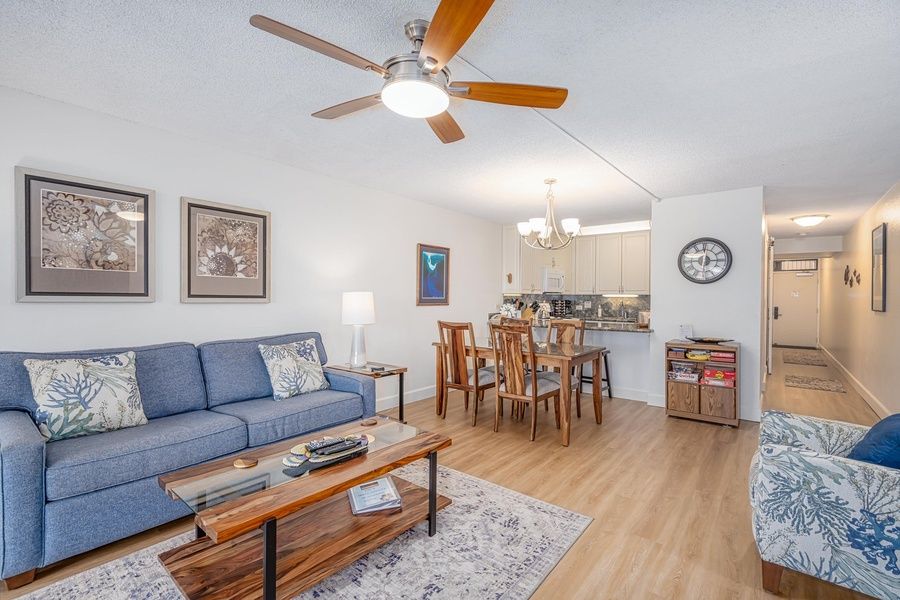 Step into your dream vacation at Kamaole Sands 6-303, located on the third floor in preferred Building 6! You will feel at home the minute you walk into this 1-bedroom 2-bath condo, which features a beautifully updated kitchen and bathrooms. Granite counters and tile showers with fresh, luxurious towels and bedding, and an in-unit washer-dryer. Our kitchen is fully stocked with cookware or dine out - we are close to more than a dozen restaurants. New, chilling AC in the living room and bedroom for your comfort. King size bed in master bedroom plus queen sofa bed means 4 guests can be accommodated comfortably. Enjoy happy hour on the large lanai overlooking the 15-acre lush garden and pool area. Directly across the street, Kamaole III Beach is one of the best family-friendly swimming beaches on the island. It has warm protected water, a wonderful snorkeling reef, and facilities. A peek-a-boo ocean view too and a short 4-minute walk to the beach to enjoy swimming, snorkeling, sunbathing, or watching the sunset. Pack a picnic and head to many other nearby beaches or take a day trip to Lahaina or Hana. Get ready to enjoy your stay! Kamaole III Beach, just across the street, is a sun-worshiper's delight and its' sloping lawn is the perfect venue from which to take in Maui's legendary sunrises. “Kam III” is known for excellent snorkeling and clear, warm-water swimming, and for the sea turtles that often nibble its reef. The beach park has restroom and shower facilities, and adjoins the South Maui Beach Path, which meanders for miles along Kihei's coastline. Walk North to the sand of Kamaole I and II Beaches. Head South past the Kihei Boat Ramp to Keawakapu Beach, and all the way to the Wailea Beach Path. Standup paddle and kayak right across the street, and whale-watch in the winter, right off the shore. // About the Property // The highly rated Kamaole Sands resort has a lush courtyard, the largest resort pool in South Kihei, that also includes two jacuzzies (one family and one adult only) as well as a splash pool for the kids. It is also a short walk across the street to the pristine Kamaole III Beach. The resort also boasts tennis courts, a newly renovated workout facility and immaculate grill areas with ample room for dining. The property consists of 10, four-story buildings on 15 acres of lush, tropical Maui in a resort like setting across from Kamaole III beach park in South Maui. // About the Area // South Kihei (pronounced KEY-hay) is where Maui's sun-drenched beaches meet relaxed island living. Located on the island's southwest shore, this vibrant coastal town is known for its golden sand beaches, stunning sunsets, and easygoing charm. With a wide variety of shops, restaurants, and beach parks within walking distance, South Kihei offers the perfect balance of convenience and natural beauty. It's an ideal home base for exploring nearby Wailea, snorkeling at Molokini, or simply unwinding with your toes in the sand. Whether you're seeking adventure or relaxation, South Kihei puts the best of Maui at your doorstep. // Things do do on Maui // Are you island hopping? Stop wasting time waiting at the airport and spend more time exploring all there is to see on Maui! Whether you're seeking adventure, relaxation, or cultural experiences, Maui offers more than enough to fill your itinerary and leave you wanting more. • Haleakala National Park - Breathtaking sunrise or sunsets. Hike through a volcanic crater. • Snorkel at Molokini Crater, Turtle Town, Lanai and underwater adventures just a boat ride away. • Whale Watching (seasonal) - Witness humpback whales breaching just offshore (Dec to Apr). • Sunset or Dinner Cruise - Set sail and soak in Maui's coastline from the sea. • World Famous Golf - Maui offers some of the best golf courses in the world • Helicopter Tours - See the island's hidden valleys, waterfalls, and sea cliffs from the sky. • Surf or Paddleboard - Gentle waves and expert instructors make it easy. • Traditional Hawaiian luau - Experience the food, music, and hula of ancient Hawaii. • Hiking - Iao Valley, the bamboo forest, the famous Hoapili Trail, and more. • Food Tours – From farm-to-table fine dining to highly rated food trucks, Maui has it all. • Farm Tours - Surfing Goat Dairy, Maui Tropical Plantation, Pineapple Farm, Lavender Farm, more. • Scenic Drives - the legendary Road to Hana, the West Maui loop and more! All this and more awaits you on your next Maui adventure! Vacation Maui has engaged VacayHome to ensure this listing contains all the information you need and that it is easy for you to book via search engines & online channels. VacayHome is connected directly to the property management system used by Vacation Maui which ensures that availability & rates are up-to-date & accurate. When you book, VacayHome processes payment on behalf of Vacation Maui and a charge will appear on your statement as "VacayHome". VacayHome will send you a confirmation e-mail that contains all the information you need to prepare for your vacation including arrival instructions. VacayHome has a 24 x 7 team to assist you with any questions or concerns you may have prior to arrival. To access VacayHome, obtain the customer support telephone number or read FAQs, please click on the links at the bottom of this page.