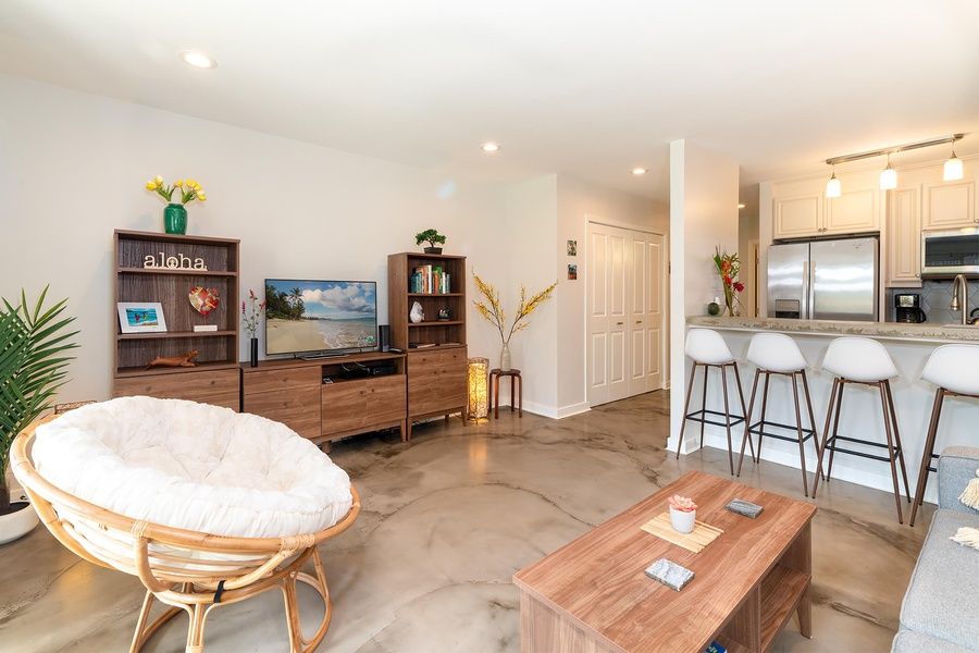 The new roof project will take place over the pool area from 7/18/25 to 7/27/25. During this time there will be noise and debris surrounding the building. ------------------------------------ From the front door, a magical stretch of Maui beach awaits your exploration - and inside, this condo has been beautifully remodeled from top to bottom, with all sparkling new furnishings, surfaces, and fixtures. Kihei Garden Estates B-103, a ground level unit in Building B at Kihei Garden Estates, features a painted and polished concrete flooring and counters set the tone for tasteful, understated elegance, and no expense has been spared to create the ultimate home base for your Maui adventure. The kitchen features new, full-sized stainless appliances, and everything you'll need to prepare and serve your private island feast. Air conditioning in the living room, free Wi-Fi, premium cable, and on-site laundry are among the conveniences. There is no AC in the bedroom, but the concrete floors and the airflow from the living room does a nice job of cooling the unit. A plush queen bed with luxury bedding combines with a comfortable new sleeper sofa to host four in consummate style and comfort. The bathroom was beautifully remodeled, with a gorgeous walk-in shower. // About the Property // Kihei Garden Estates is a charming, low-rise condo community located in the heart of Kihei, offering a peaceful and affordable Maui getaway just a short walk from Waiohuli Beach. This cozy complex features one- and two-bedroom units with private lanais and fully equipped kitchens, perfect for couples, families, and small groups seeking a comfortable stay. Guests can enjoy the lush tropical landscaping, a centrally located pool and hot tub, and a BBQ pavilion for outdoor dining. With easy access to nearby shopping, dining, and Kihei's stunning beaches, Kihei Garden Estates provides a convenient and laid-back home base for exploring the island. // About the Area // North Kihei (pronounced KEY-hay) is a breezy beachfront stretch on Maui's southwest coast, offering panoramic ocean views and a more laid-back, residential feel. Known for its long sandy beaches like Sugar Beach and tranquil mornings perfect for paddleboarding or beach walks, North Kihei appeals to those seeking serenity without straying far from the action. Just a short drive from Maalaea Harbor and central Maui, North Kihei offers convenient access to whale watching tours, snorkel cruises, and island excursions. With fewer crowds and a mellow vibe, it's a favorite for families, couples, and return visitors looking for a peaceful slice of paradise. // Things do do on Maui // Are you island hopping? Stop wasting time waiting at the airport and spend more time exploring all there is to see on Maui! Whether you're seeking adventure, relaxation, or cultural experiences, Maui offers more than enough to fill your itinerary and leave you wanting more. • Haleakala National Park - Breathtaking sunrise or sunsets. Hike through a volcanic crater. • Snorkel at Molokini Crater, Turtle Town, Lanai and underwater adventures just a boat ride away. • Whale Watching (seasonal) - Witness humpback whales breaching just offshore (Dec to Apr). • Sunset or Dinner Cruise - Set sail and soak in Maui's coastline from the sea. • World Famous Golf - Maui offers some of the best golf courses in the world • Helicopter Tours - See the island's hidden valleys, waterfalls, and sea cliffs from the sky. • Surf or Paddleboard - Gentle waves and expert instructors make it easy. • Traditional Hawaiian luau - Experience the food, music, and hula of ancient Hawaii. • Hiking - Iao Valley, the bamboo forest, the famous Hoapili Trail, and more. • Food Tours – From farm-to-table fine dining to highly rated food trucks, Maui has it all. • Farm Tours - Surfing Goat Dairy, Maui Tropical Plantation, Pineapple Farm, Lavender Farm, more. • Scenic Drives - the legendary Road to Hana, the West Maui loop and more! All this and more awaits you on your next Maui adventure! // About Vacation-Maui // This immaculate property, hosted by Vacation-Maui, comes fully stocked for a stress-free island stay. Enjoy complimentary beach gear - including beach chairs, towels, an umbrella, and a small cooler - perfect for your days on the sand. Inside, you'll find everything you need, from fresh linens and bath towels to hair dryers and a fully equipped kitchen ready for home-cooked meals. With over 5,000 guest reviews and an average rating of 4.8 stars, Vacation-Maui is proud to deliver consistently exceptional experiences. Early check-ins and late check-outs are not guaranteed and must be arranged in advance due to cleaning and maintenance schedules. If you have a late flight or early arrival, please contact us ahead of time to check availability and secure an early check-in or late checkout at a reduced daily rate. Mahalo for your understanding. Vacation Maui has engaged VacayHome to ensure this listing contains all the information you need and that it is easy for you to book via search engines & online channels. VacayHome is connected directly to the property management system used by Vacation Maui which ensures that availability & rates are up-to-date & accurate. When you book, VacayHome processes payment on behalf of Vacation Maui and a charge will appear on your statement as "VacayHome". VacayHome will send you a confirmation e-mail that contains all the information you need to prepare for your vacation including arrival instructions. VacayHome has a 24 x 7 team to assist you with any questions or concerns you may have prior to arrival. To access VacayHome, obtain the customer support telephone number or read FAQs, please click on the links at the bottom of this page.