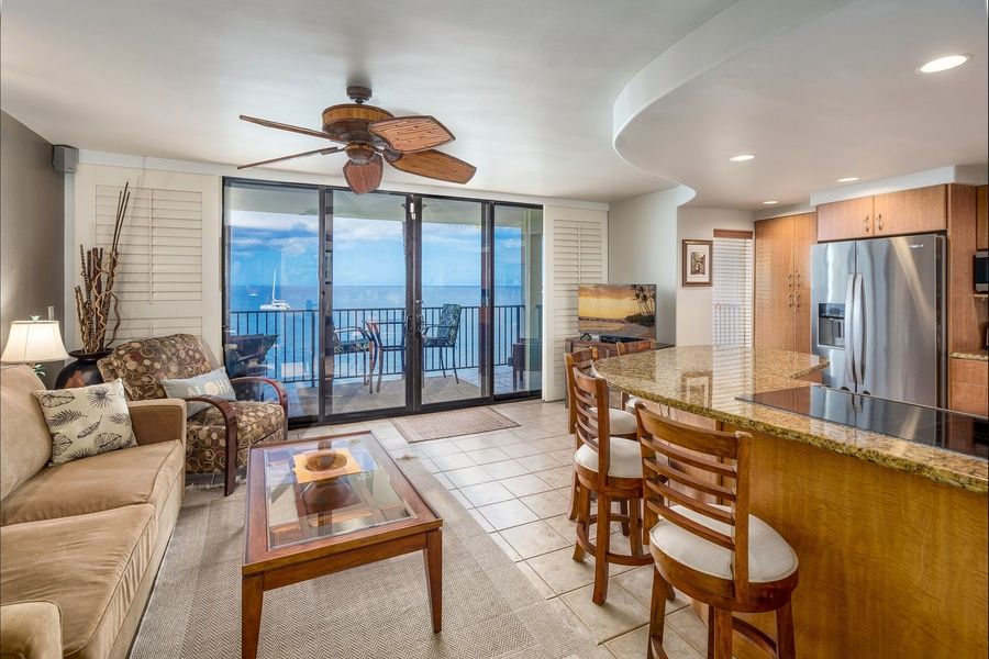 Enjoy unparalleled ocean views from this top floor unit, Kihei Beach Condominium 606. Beautifully remodeled, beach front, and overlooking Maui's longest golden sand beach. Start and end each Maui day with panoramic views that take in the Pacific far beyond the visible outer islands, watch whales leap from the ocean in season, and enjoy a fully immersed ocean experience for two during your Maui stay. Less than 30 seconds from your feet in the sand at stunning Sugar Beach, which spans six miles, and invites those leisurely morning and sunset beach walks. You'll stroll past one of Kihei's wonderful bird sanctuaries on a beach less-travelled, with vibrant snorkeling reef, warm-water swimming, and pristine water. This contemporary condo's luxury transformation includes a robustly appointed and efficient kitchen, featuring granite, elegant bamboo cabinets and pantry, full-sized stainless appliances, and exquisite lighting. Shutter lanai doors block out the day until you're ready to greet the sounds of lapping waves on the beach below, and stylish soffits enhance the wonderful flow of the space. Porcelain tile throughout. Choose from the floral, tropical breezes or chilling Central AC to find your ultimate comfort level. Along with the views, an array of high-quality furnishings and décor set this 1-Bedroom, 2-Bath condo apart from typical vacation rental faire. High-speed wireless internet and free convenient parking are included. You will come away from your Maui stay fully recharged from the extraordinary comfort of the King luxury mattress, the centerpiece of your ensuite Master. Hardwood furniture, Smart TV, plenty of storage and a dedicated workspace with great Wi-Fi enhance the high-end tone of this unit that you will find throughout. A shared open air sunbathing deck sits between the units and is a wonderful place to enjoy the sun or sunset. Venture out and beside the seemingly endless shoreline you'll find a beautifully maintained, sparkling ocean front pool area, gas barbeque grills, and laundry facilities. A stroll across the street to Ululani's Shave Ice (in our opinion, the best on the island) and Sugar Beach Bakery (ditto) may become a habit. There are also a couple of restaurants within walking distance, and South Kihei's multitude of eating spots and shopping areas is a five-minute drive. Experience the scent of the sea, gentle lap of the waves, and romantic sunsets at close-range – the way Maui was meant to be enjoyed. // About the Property // Kihei Beach Condominiums offers a relaxed, beachfront escape on Maui's scenic North Kihei coastline, directly facing the soft sands of Sugar Beach. This boutique property features spacious one- and two-bedroom condos with private lanais, fully equipped kitchens, and panoramic ocean views—perfect for catching Maui's beautiful sunsets. Guests can unwind at the oceanfront pool, enjoy BBQ facilities, and walk directly onto miles of sandy beach ideal for swimming, snorkeling, and paddleboarding. Located near Maalaea Harbor and a short drive from South Maui's dining, shopping, and attractions, Kihei Beach Condominiums is a peaceful yet convenient spot for an unforgettable island vacation. // About the Area // North Kihei (pronounced KEY-hay) is a breezy beachfront stretch on Maui's southwest coast, offering panoramic ocean views and a more laid-back, residential feel. Known for its long sandy beaches like Sugar Beach and tranquil mornings perfect for paddleboarding or beach walks, North Kihei appeals to those seeking serenity without straying far from the action. Just a short drive from Maalaea Harbor and central Maui, North Kihei offers convenient access to whale watching tours, snorkel cruises, and island excursions. With fewer crowds and a mellow vibe, it's a favorite for families, couples, and return visitors looking for a peaceful slice of paradise. // Things do do on Maui // Are you island hopping? Stop wasting time waiting at the airport and spend more time exploring all there is to see on Maui! Whether you're seeking adventure, relaxation, or cultural experiences, Maui offers more than enough to fill your itinerary and leave you wanting more. • Haleakala National Park - Breathtaking sunrise or sunsets. Hike through a volcanic crater. • Snorkel at Molokini Crater, Turtle Town, Lanai and underwater adventures just a boat ride away. • Whale Watching (seasonal) - Witness humpback whales breaching just offshore (Dec to Apr). • Sunset or Dinner Cruise - Set sail and soak in Maui's coastline from the sea. • World Famous Golf - Maui offers some of the best golf courses in the world • Helicopter Tours - See the island's hidden valleys, waterfalls, and sea cliffs from the sky. • Surf or Paddleboard - Gentle waves and expert instructors make it easy. • Traditional Hawaiian luau - Experience the food, music, and hula of ancient Hawaii. • Hiking - Iao Valley, the bamboo forest, the famous Hoapili Trail, and more. Vacation Maui has engaged VacayHome to ensure this listing contains all the information you need and that it is easy for you to book via search engines & online channels. VacayHome is connected directly to the property management system used by Vacation Maui which ensures that availability & rates are up-to-date & accurate. When you book, VacayHome processes payment on behalf of Vacation Maui and a charge will appear on your statement as "VacayHome". VacayHome will send you a confirmation e-mail that contains all the information you need to prepare for your vacation including arrival instructions. VacayHome has a 24 x 7 team to assist you with any questions or concerns you may have prior to arrival. To access VacayHome, obtain the customer support telephone number or read FAQs, please click on the links at the bottom of this page.