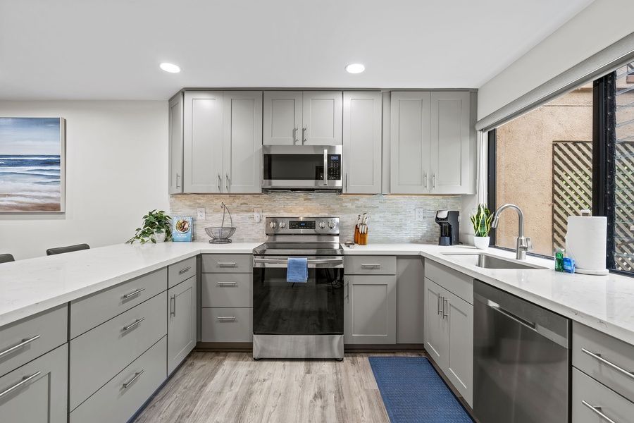 Nestled on the ground floor, Wailea Ekahi 24B is a beautifully remodeled one-bedroom, two-bath condo featuring a sleek, modern design and effortless indoor-outdoor living. With elegant finishes throughout, including quartz countertops and stainless-steel appliances, this open-concept layout basks in natural light and serene garden views. The generously sized dining area transitions easily to your private lanai, where you will enjoy tropical breezes and al fresco meals. The spacious primary suite is a peaceful retreat, complete with a king-size bed, flat-screen TV, and a luxurious ensuite bathroom featuring a walk-in shower and tasteful tilework - all parts of a full renovation completed in 2020. Comfort continues with thoughtful amenities like split A/C throughout, ceiling fans, and an in-unit washer/dryer for convenience and ease. An oversized sectional sofa in the living area that converts into a queen-size bed, plus a second full bathroom with bathtub-shower combination offers expanded options for families or couples. This blend of comfort, elegance, and practical design makes it ideal for up to four guests. Two private lanais - one off the living area and another off the bedroom - offer distinct spaces for morning coffee or sunset cocktails. Surrounded by lush tropical landscaping, these outdoor spaces elevate the everyday experience, infusing it with Maui's natural charm. // About the Property // Wailea Ekahi Village offers an array of amenities, including four swimming pools, a beachfront pavilion with BBQ facilities, and direct access to the Wailea Beach Path. The meticulously maintained 34-acre property is adorned with vibrant tropical gardens, providing a picturesque backdrop for leisurely strolls. Conveniently located, the Shops at Wailea and the Wailea Golf Club are just a short walk away, offering shopping, dining, and entertainment options. // About the Area // Wailea is Maui's premier resort community, known for its luxurious ambiance, world-class beaches, and refined island beauty. Located just south of Kihei on the island's sun-soaked southwestern coast, Wailea offers a more serene, upscale escape while still embracing the aloha spirit. This meticulously planned community is home to five crescent-shaped beaches, championship golf courses, award-winning restaurants, and high-end shopping at The Shops at Wailea. Perfectly manicured landscapes, scenic coastal walking paths, and panoramic ocean views make Wailea a destination for both relaxation and indulgence. Whether you're enjoying a sunset stroll, teeing off on one of its famed golf courses, or diving into the crystal-clear waters of the Pacific, Wailea offers a refined yet welcoming base to experience the very best of South Maui. // Things do do on Maui // Are you island hopping? Stop wasting time waiting at the airport and spend more time exploring all there is to see on Maui! Whether you're seeking adventure, relaxation, or cultural experiences, Maui offers more than enough to fill your itinerary and leave you wanting more. • Haleakala National Park - Breathtaking sunrise or sunsets. Hike through a volcanic crater. • Snorkel at Molokini Crater, Turtle Town, Lanai and underwater adventures just a boat ride away. • Whale Watching (seasonal) - Witness humpback whales breaching just offshore (Dec to Apr). • Sunset or Dinner Cruise - Set sail and soak in Maui's coastline from the sea. • World Famous Golf - Maui offers some of the best golf courses in the world • Helicopter Tours - See the island's hidden valleys, waterfalls, and sea cliffs from the sky. • Surf or Paddleboard - Gentle waves and expert instructors make it easy. • Traditional Hawaiian luau - Experience the food, music, and hula of ancient Hawaii. • Hiking - Iao Valley, the bamboo forest, the famous Hoapili Trail, and more. • Food Tours – From farm-to-table fine dining to highly rated food trucks, Maui has it all. • Farm Tours - Surfing Goat Dairy, Maui Tropical Plantation, Pineapple Farm, Lavender Farm, more. • Scenic Drives - the legendary Road to Hana, the West Maui loop and more! All this and more awaits you on your next Maui adventure! // About Vacation-Maui // This immaculate property, hosted by Vacation-Maui, comes fully stocked for a stress-free island stay. Enjoy complimentary beach gear - including beach chairs, towels, an umbrella, and a small cooler - perfect for your days on the sand. Inside, you'll find everything you need, from fresh linens and bath towels to hair dryers and a fully equipped kitchen ready for home-cooked meals. With over 5,000 guest reviews and an average rating of 4.8 stars, Vacation-Maui is proud to deliver consistently exceptional experiences. Vacation Maui has engaged VacayHome to ensure this listing contains all the information you need and that it is easy for you to book via search engines & online channels. VacayHome is connected directly to the property management system used by Vacation Maui which ensures that availability & rates are up-to-date & accurate. When you book, VacayHome processes payment on behalf of Vacation Maui and a charge will appear on your statement as "VacayHome". VacayHome will send you a confirmation e-mail that contains all the information you need to prepare for your vacation including arrival instructions. VacayHome has a 24 x 7 team to assist you with any questions or concerns you may have prior to arrival. To access VacayHome, obtain the customer support telephone number or read FAQs, please click on the links at the bottom of this page.