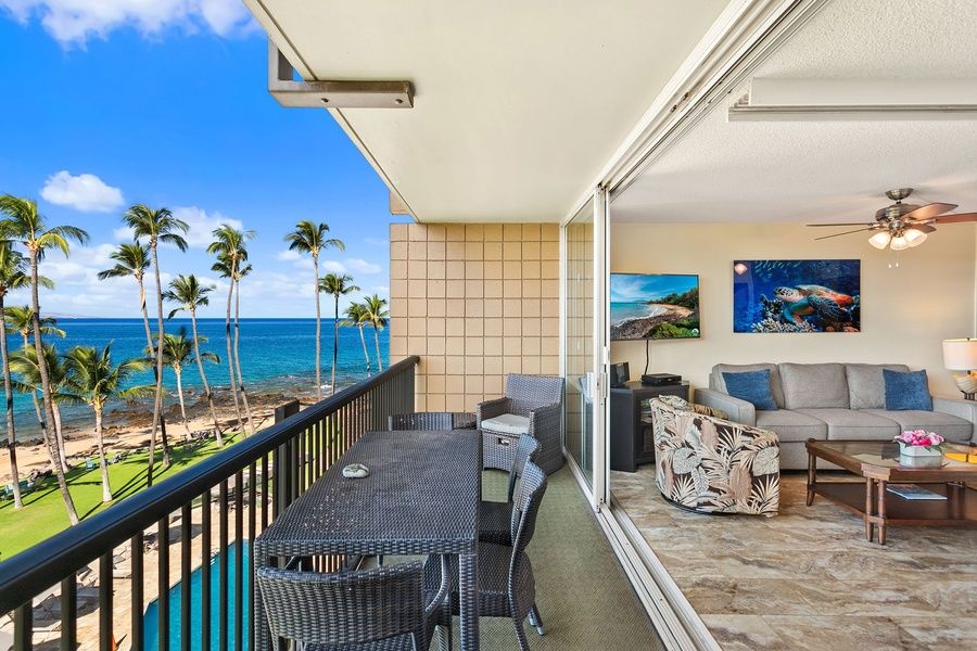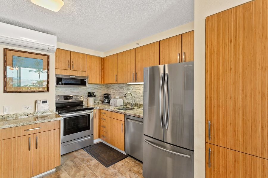 Mana Kai Maui is Kihei's most exclusive vacation rental resort, with its location on the sand on Keawakapu Beach - and this unit features a prime location in the building, with sweeping views down the south Maui shoreline, to the Wailea resorts. Fabulous snorkeling directly in front of the building, warm-water swimming, ideal for stand-up paddle boarding and kayaking: this location has it all for the ultimate Maui beach experience. Mana Kai 410 is located conveniently on the 4th floor near the center of the building. Sleep the sound of the waves and experience one of the island's best ocean views from your living room and lanai. Tropical breezes waft through the condo with your open lanai door or relax in air-conditioned comfort throughout the unit. Inside, the unit has every imaginable convenience -- the San Diego based owners set it up for their Maui getaway and equipped it for style and comfort. Split-system AC chills the unit, and high-speed Wi-Fi is free. New furnishings and art, a beautifully remodeled kitchen, new high-end King mattresses and luxury linens, and a full complement of beach gear provide the ultimate setting for your Maui getaway, for up to four guests. The two bedrooms have excellent separation: one has spectacular ocean views, the other a peek of the ocean. Resort amenities include a beautiful new workout center, ocean front pool, grilling area, free reserved parking and on-site store, restaurant and Yoga center. The property recently underwent a grand-scale remodel, and it is the pinnacle vacation property on Maui's sun-drenched South Shore. Walk off the elevator to the sand, and you can walk the beach for several miles, past Wailea's resorts (and restaurants) to the famed Wailea Beach path. The property is located at the extreme South end of Kihei, at Wailea's edge. The kitchen has been properly equipped to prepare and serve your private Maui feast, with all the requisite small appliances, cook ware, and serving implements. // About the Property // Welcome to Mana Kai Maui, a premier oceanfront resort located directly on South Kihei's breathtaking Keawakapu Beach. These spacious two-bedroom condominiums offer sweeping views of the Pacific, private lanais, fully equipped kitchens, and all the comforts of home, enhanced by resort-style amenities. Guests enjoy instant access to one of Maui's most pristine beaches, perfect for warm-water swimming, snorkeling with tropical fish, and paddleboarding along the vibrant reef. Whether you're traveling as a couple, family, or solo adventurer, Mana Kai Maui places you steps away from the ultimate Hawaiian beach experience. Resort amenities include a fully equipped fitness center, business center, oceanfront gas BBQ grills, and the convenient 808 General Store. Relax with on-site yoga classes, plan excursions at the activity desk, or simply unwind to the sounds of the surf. Located just minutes from Wailea's upscale shopping and dining, and Kihei's lively local charm, Mana Kai Maui combines natural beauty with island hospitality and the true spirit of aloha - making it the perfect choice for your next Maui getaway. // About the Area // South Kihei (pronounced KEY-hay) is where Maui's sun-drenched beaches meet relaxed island living. Located on the island's southwest shore, this vibrant coastal town is known for its golden sand beaches, stunning sunsets, and easygoing charm. With a wide variety of shops, restaurants, and beach parks within walking distance, South Kihei offers the perfect balance of convenience and natural beauty. It's an ideal home base for exploring nearby Wailea, snorkeling at Molokini, or simply unwinding with your toes in the sand. Whether you're seeking adventure or relaxation, South Kihei puts the best of Maui at your doorstep. // Things do do on Maui // Are you island hopping? Stop wasting time waiting at the airport and spend more time exploring all there is to see on Maui! Whether you're seeking adventure, relaxation, or cultural experiences, Maui offers more than enough to fill your itinerary and leave you wanting more. • Haleakala National Park - Breathtaking sunrise or sunsets. Hike through a volcanic crater. • Snorkel at Molokini Crater, Turtle Town, Lanai and underwater adventures just a boat ride away. • Whale Watching (seasonal) - Witness humpback whales breaching just offshore (Dec to Apr). • Sunset or Dinner Cruise - Set sail and soak in Maui's coastline from the sea. • World Famous Golf - Maui offers some of the best golf courses in the world • Helicopter Tours - See the island's hidden valleys, waterfalls, and sea cliffs from the sky. • Surf or Paddleboard - Gentle waves and expert instructors make it easy. • Traditional Hawaiian luau - Experience the food, music, and hula of ancient Hawaii. • Hiking - Iao Valley, the bamboo forest, the famous Hoapili Trail, and more. • Food Tours – From farm-to-table fine dining to highly rated food trucks, Maui has it all. Vacation Maui has engaged VacayHome to ensure this listing contains all the information you need and that it is easy for you to book via search engines & online channels. VacayHome is connected directly to the property management system used by Vacation Maui which ensures that availability & rates are up-to-date & accurate. When you book, VacayHome processes payment on behalf of Vacation Maui and a charge will appear on your statement as "VacayHome". VacayHome will send you a confirmation e-mail that contains all the information you need to prepare for your vacation including arrival instructions. VacayHome has a 24 x 7 team to assist you with any questions or concerns you may have prior to arrival. To access VacayHome, obtain the customer support telephone number or read FAQs, please click on the links at the bottom of this page.