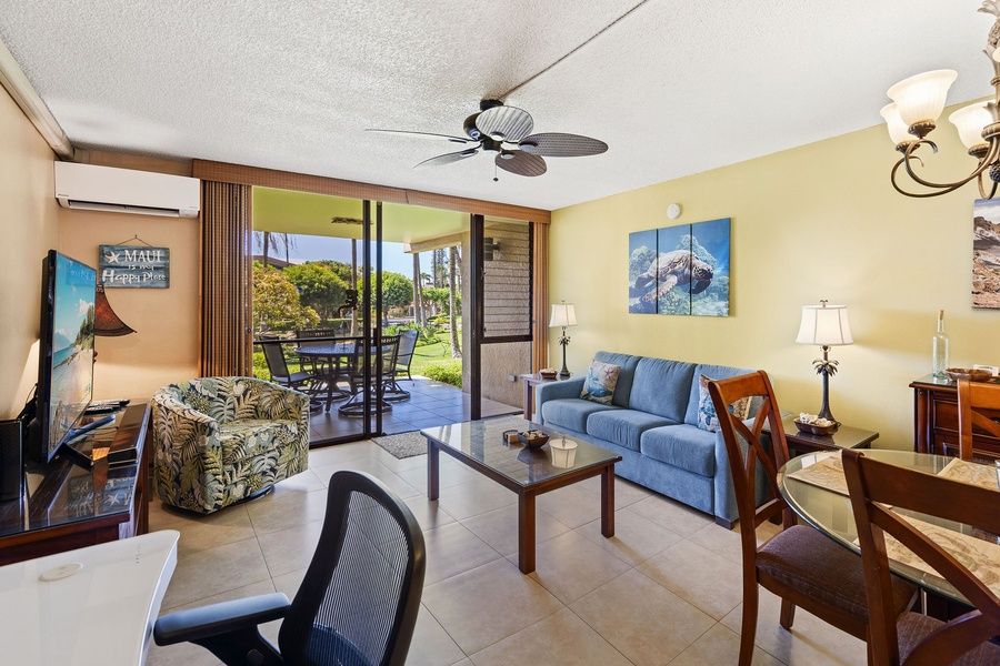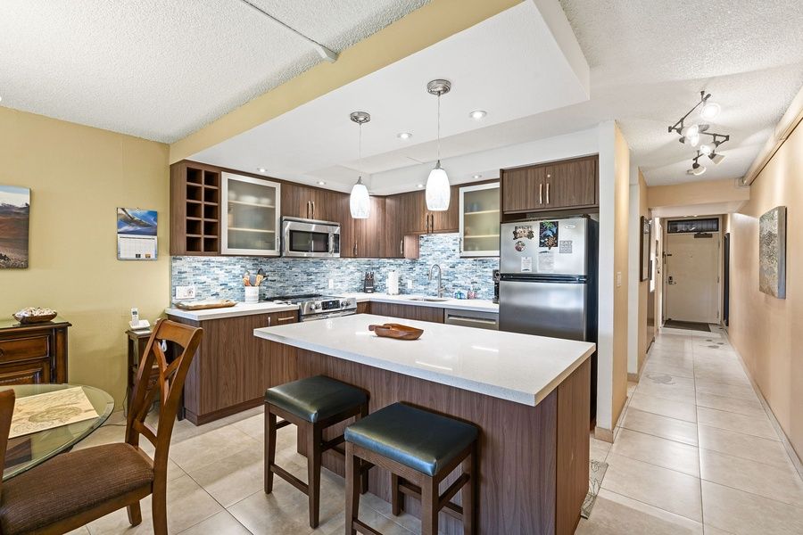 Step into island comfort at Kamaole Sands 10-113, a beautifully remodeled ground-floor condo that blends modern design with relaxed Hawaiian living. This one-bedroom, two-bath unit features an open and thoughtful layout, offering privacy & space for couples or solo travelers. The fully equipped kitchen features stainless steel appliances, granite countertops, and everything needed to prepare meals at home. Stylish tile flooring flows throughout the space, while a dual zone split-AC system ensures personalized climate control. The primary bedroom includes a California king bed with a premium mattress, plantation shutters for added privacy, and a flat-screen TV for unwinding after a day in the sun. The living room opens directly to a covered large lanai, perfect for enjoying outdoor meals, morning coffee, or evening cocktails while taking in peaceful views of the lush tropical courtyard and the ocean beyond. This sought-after location in Building 10 places you just steps from the resort's pool and only 200 yards from the sparkling Pacific Ocean and Kamaole Beach Park III, one of South Maui's best beaches for swimming, snorkeling, and sunsets. Ground-floor access makes it easy to come and go without stairs or elevators, and the unit's quiet location offers additional privacy and serenity. Every detail has been considered to make your stay effortless, from fast Wi-Fi (ideal for remote work or streaming) to an in-unit washer/dryer and a full selection of beach gear. Whether you're here to explore the island or simply relax in the sun, Kamaole Sands 10-113 provides a perfect blend of comfort, convenience, and style in one of Maui's most desirable resort communities. // About the Property // The highly rated Kamaole Sands resort has a lush courtyard, the largest resort pool in South Kihei, that also includes two jacuzzies (one family and one adult only) as well as a splash pool for the kids. It is also a short walk across the street to the pristine Kamaole III Beach. The resort also boasts 2 tennis courts and 3 pickleball courts, a newly renovated workout facility and immaculate grill areas with ample room for dining. The property consists of 10, four-story buildings on 15 acres of lush, tropical Maui in a resort like setting across from Kamaole III beach park in South Maui. // About the Area // South Kihei (pronounced KEY-hay) is where Maui's sun-drenched beaches meet relaxed island living. Located on the island's southwest shore, this vibrant coastal town is known for its golden sand beaches, stunning sunsets, and easygoing charm. With a wide variety of shops, restaurants, and beach parks within walking distance, South Kihei offers the perfect balance of convenience and natural beauty. It's an ideal home base for exploring nearby Wailea, snorkeling at Molokini, or simply unwinding with your toes in the sand. Whether you're seeking adventure or relaxation, South Kihei puts the best of Maui at your doorstep. // Things do do on Maui // Are you island hopping? Stop wasting time waiting at the airport and spend more time exploring all there is to see on Maui! Whether you're seeking adventure, relaxation, or cultural experiences, Maui offers more than enough to fill your itinerary and leave you wanting more. • Haleakala National Park - Breathtaking sunrise or sunsets. Hike through a volcanic crater. • Snorkel at Molokini Crater, Turtle Town, Lanai and underwater adventures just a boat ride away. • Whale Watching (seasonal) - Witness humpback whales breaching just offshore (Dec to Apr). • Sunset or Dinner Cruise - Set sail and soak in Maui's coastline from the sea. • World Famous Golf - Maui offers some of the best golf courses in the world • Helicopter Tours - See the island's hidden valleys, waterfalls, and sea cliffs from the sky. • Surf or Paddleboard - Gentle waves and expert instructors make it easy. • Traditional Hawaiian luau - Experience the food, music, and hula of ancient Hawaii. • Hiking - Iao Valley, the bamboo forest, the famous Hoapili Trail, and more. • Food Tours – From farm-to-table fine dining to highly rated food trucks, Maui has it all. • Farm Tours - Surfing Goat Dairy, Maui Tropical Plantation, Pineapple Farm, Lavender Farm, more. • Scenic Drives - the legendary Road to Hana, the West Maui loop and more! All this and more awaits you on your next Maui adventure! // About Vacation-Maui // This immaculate property, hosted by Vacation-Maui, comes fully stocked for a stress-free island stay. Enjoy complimentary beach gear - including beach chairs, beach towels, an umbrella, and a small cooler - perfect for your days on the sand. Inside, you'll find everything you need, from fresh linens and bath towels to hair dryers and a fully equipped kitchen ready for home-cooked meals. With over 5,000 guest reviews and an average rating of 4.8 stars, Vacation-Maui is proud to deliver consistently exceptional experiences. Vacation Maui has engaged VacayHome to ensure this listing contains all the information you need and that it is easy for you to book via search engines & online channels. VacayHome is connected directly to the property management system used by Vacation Maui which ensures that availability & rates are up-to-date & accurate. When you book, VacayHome processes payment on behalf of Vacation Maui and a charge will appear on your statement as "VacayHome". VacayHome will send you a confirmation e-mail that contains all the information you need to prepare for your vacation including arrival instructions. VacayHome has a 24 x 7 team to assist you with any questions or concerns you may have prior to arrival. To access VacayHome, obtain the customer support telephone number or read FAQs, please click on the links at the bottom of this page.