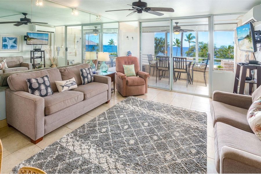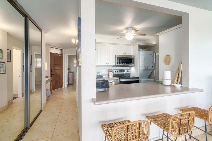If your trip to Maui is all about the ocean and beach, it does not get much better than Kamaole Beach Royale 404 with beautiful panoramic ocean views and location less than a one-minute walk to Kamaole I Beach, one of the best in all the islands. Warm-water swimming, pristine snorkeling reef, and Maui's soft golden sand awaits directly across the street, and when you are not at the ocean, you're looking at it, with expansive and awe-inspiring views from not only the lanai, but the living room and kitchen. The owners of this fully equipped condo, which features imported tile throughout and a chilling wall-mount AC unit in the living room, have continuously upgraded the interior with beautiful locally sourced art, contemporary hardwood furnishings and locally sourced art. You will feel like you are in Hawaii the minute you arrive, with the swaying palms in the foreground and the ocean beckoning with 180-degree views. The kitchen is well equipped to prepare and serve, with full-sized appliances and a plethora of implements, when you do not feel like walking to any of the more than a dozen restaurants within a two-block radius. Or grill and dine on the Kamaole Royale's commercial-level grills on the private rooftop oasis, where you'll experience one of the best views of the Kihei coastline to be found. Up to four guests are comfortably accommodated with a luxury hotel-level King bed and new Queen sleeper sofa. Wall-mounted TVs are featured in the living room and bedroom and the private wireless internet connection is strong and free of charge. The bathrooms have been beautifully remodeled, and the walk-in shower features natural stone flooring. ** This vacation rental at Kamaole Beach Royale is hotel‑zoned, meaning it is exempt from Maui's pending 2030 short‑term rental phase‑out and continues to allow legal vacation stays. ** // About the Property // Kamaole Beach Royale in Kihei is a delightful vacation rental property offering spacious condos with breathtaking ocean views, directly across from the popular Kamaole Beach Park I. Ideal for families, couples, and groups, this well-maintained complex features one-, two-, and three-bedroom units, each equipped with private lanais. Guests can enjoy a rooftop BBQ area, outdoor pool, and nearby access to Kihei's best dining, shopping, and beach activities. Kamaole Beach Royale provides a comfortable and scenic retreat, perfect for experiencing the beauty and charm of South Maui. Kamaole One Beach, regularly named as one of Maui's best beaches, links to Kamaole II and Kamaole III Beaches, all amazing and each with its own tone and tempo. In fact, you can now walk up to five miles south on the shoreline path, all the way to the Wailea resorts and beyond. // About the Area // South Kihei (pronounced KEY-hay) is where Maui's sun-drenched beaches meet relaxed island living. Located on the island's southwest shore, this vibrant coastal town is known for its golden sand beaches, stunning sunsets, and easygoing charm. With a wide variety of shops, restaurants, and beach parks within walking distance, South Kihei offers the perfect balance of convenience and natural beauty. It's an ideal home base for exploring nearby Wailea, snorkeling at Molokini, or simply unwinding with your toes in the sand. Whether you're seeking adventure or relaxation, South Kihei puts the best of Maui at your doorstep. // Things do do on Maui // Are you island hopping? Stop wasting time waiting at the airport and spend more time exploring all there is to see on Maui! Whether you're seeking adventure, relaxation, or cultural experiences, Maui offers more than enough to fill your itinerary and leave you wanting more. • Haleakala National Park - Breathtaking sunrise or sunsets. Hike through a volcanic crater. • Snorkel at Molokini Crater, Turtle Town, Lanai and underwater adventures just a boat ride away. • Whale Watching (seasonal) - Witness humpback whales breaching just offshore (Dec to Apr). • Sunset or Dinner Cruise - Set sail and soak in Maui's coastline from the sea. • World Famous Golf - Maui offers some of the best golf courses in the world • Helicopter Tours - See the island's hidden valleys, waterfalls, and sea cliffs from the sky. • Surf or Paddleboard - Gentle waves and expert instructors make it easy. • Traditional Hawaiian luau - Experience the food, music, and hula of ancient Hawaii. • Hiking - Iao Valley, the bamboo forest, the famous Hoapili Trail, and more. • Food Tours – From farm-to-table fine dining to highly rated food trucks, Maui has it all. • Farm Tours - Surfing Goat Dairy, Maui Tropical Plantation, Pineapple Farm, Lavender Farm, more. • Scenic Drives - the legendary Road to Hana, the West Maui loop and more! All this and more awaits you on your next Maui adventure! // About Vacation-Maui // This immaculate property, hosted by Vacation-Maui, comes fully stocked for a stress-free island stay. Enjoy complimentary beach gear - including beach chairs Vacation Maui has engaged VacayHome to ensure this listing contains all the information you need and that it is easy for you to book via search engines & online channels. VacayHome is connected directly to the property management system used by Vacation Maui which ensures that availability & rates are up-to-date & accurate. When you book, VacayHome processes payment on behalf of Vacation Maui and a charge will appear on your statement as "VacayHome". VacayHome will send you a confirmation e-mail that contains all the information you need to prepare for your vacation including arrival instructions. VacayHome has a 24 x 7 team to assist you with any questions or concerns you may have prior to arrival. To access VacayHome, obtain the customer support telephone number or read FAQs, please click on the links at the bottom of this page.