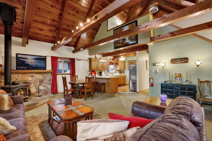Welcome to Oakwood Cottage at Big Bear! Quietly nestled in the trees of Sugarloaf awaits your next home away from home in the mountains. Boasting knotty pine wood accents, exposed beam ceilings, and plenty of natural lighting, this retreat offers the perfect balance of comforts from home and alpine atmosphere. The perfect home base for families, couples, or a group of friends to experience the best of Big Bear is right here at Oakwood Cottage.