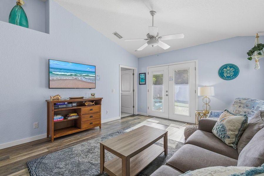 Welcome to Terrapin Station. This sunlit Ormond Beach retreat invites families and groups to relax, recharge, and reconnect—just a short stroll from the ocean. With a private fenced yard, stylish interiors, and thoughtful beach-day amenities, every detail is designed for comfort and convenience.