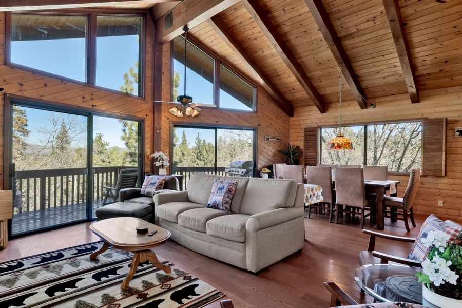 Step outside to discover expansive decks that overlook the tranquil woods, offering a peaceful setting for morning coffee or evening cocktails. Whether you're enjoying a game night indoors or stargazing under the clear mountain sky, The Bronwell House provides a tranquil and comfortable base for your Big Bear Lake adventures.
