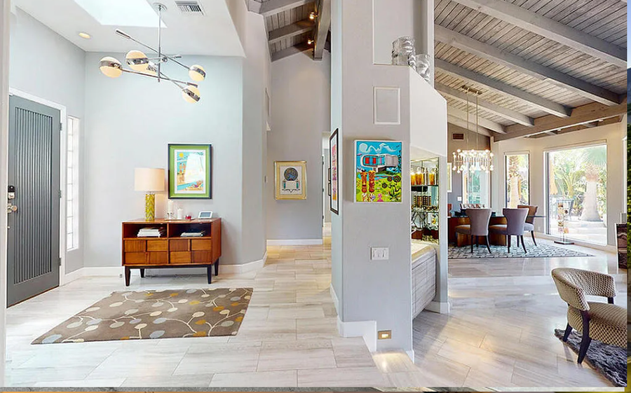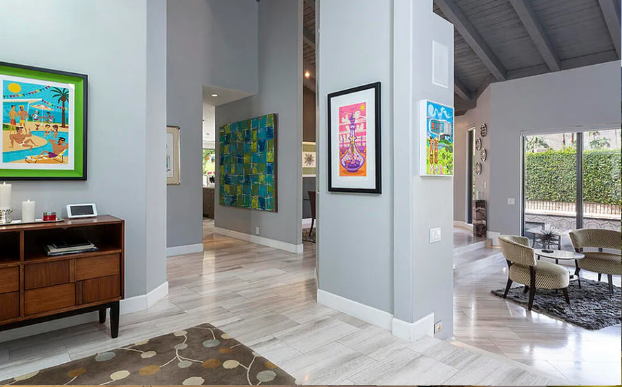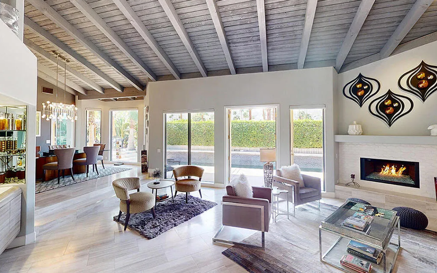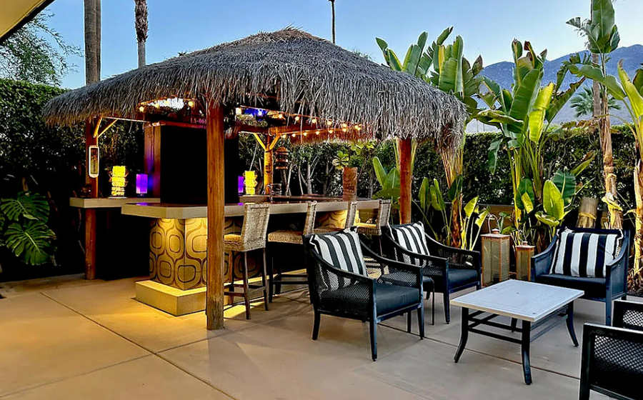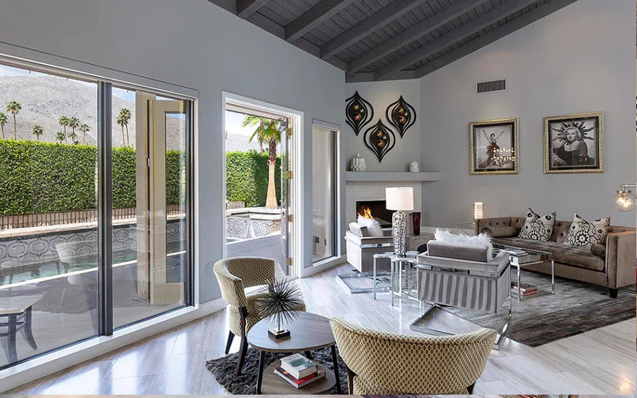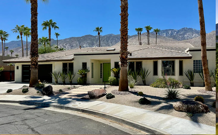 29-Night Minimum Welcome to an elevated desert escape in South Palm Springs’ coveted Canyon Palms neighborhood. This stunning four-bedroom luxury estate blends modern elegance with Polynesian-inspired design, offering resort-style amenities, breathtaking mountain views, and a refined, dog-friendly experience. Highlights • Resort-style Polynesian-inspired pool & spa • Private tiki bar and outdoor kitchen • Vaulted, beamed ceilings with dramatic open layout • Designer chef’s kitchen with oversized prep island • Media room and wet bar for entertaining • Three ensuite bedrooms plus guest bath • Solar-powered home with modern systems • Attached 2-car garage The Space Designed for sophisticated desert living, this expansive residence offers a seamless blend of luxury, comfort, and style. The open-concept living and dining areas are framed by soaring vaulted ceilings and exposed beams, while walls of glass and Fleetwood sliding doors showcase panoramic mountain views and create effortless indoor-outdoor flow. The entertainer’s layout includes a stylish wet bar and adjoining media room—ideal for hosting, relaxing, or unwinding after a day by the pool. At the heart of the home, the gourmet kitchen impresses with custom cabinetry, premium high-end appliances, and a dramatic oversized island perfect for casual dining or gathering with friends and family. Every detail has been thoughtfully curated to provide an elevated vacation experience, whether you’re hosting guests or enjoying a quiet retreat with your four-legged companion. Sleeping Arrangements Primary Suite: King bed, sitting area with gas fireplace, direct pool access, spa-like ensuite bathroom, and expansive walk-in closet Bedroom Two: King bed with private ensuite bathroom Bedroom Three: Queen bed with private ensuite bathroom Bedroom Four: Queen bed with access to the guest bathroom Outdoor Living Step into your own private resort oasis. The lush backyard features a Polynesian-inspired pool and spa, surrounded by mature landscaping and stunning mountain backdrops. Entertain effortlessly at the custom tiki bar and outdoor kitchen, or relax poolside with a cocktail as the sun sets. With generous outdoor space and secure privacy, this home is also well-suited for traveling with dogs, offering room to relax and enjoy the desert lifestyle together. Location Located in the highly sought-after Canyon Palms neighborhood of South Palm Springs, this home is just minutes from world-class golf, hiking trails, upscale dining, and Smoketree Village—offering the perfect balance of tranquility and convenience. Pool Heat Ensure a comfortable swim with optional pool heating, available upon request at booking or before your arrival. The pool is heated to 87º from 7 AM to 7 PM throughout your stay. Rates vary by season: • November–March: USD75/night • April, May, October: USD50/night • Not needed in other months For stays under 7 nights, pool heat must be purchased for the entire stay—we cannot heat it for select days. A 24-hour notice prior to your arrival is required to ensure optimal warmth on your first night. Heating begins the day before your arrival at no extra charge. Hot Tub Indulge in the ultimate relaxation with our hot tub, conveniently heated at your fingertips using a remote control. Please note that the hot tub is not pre-heated before arrival, but worry not—there's no extra charge (even if not opting for pool heat) to enjoy its warmth. Simply activate it whenever you desire, creating the perfect atmosphere for a soothing soak during your stay. Dog-Friendly Stay (up to 1 dog/stay) One well-behaved dog is welcome with prior approval. For the comfort of all guests and to protect the home, puppies under one (1) year of age are not permitted. Dogs must be house-trained and not left unattended in the home or yard. Stays between 2-20 nights, there is a USD89 fee. Stays of 21 nights or more, there is a USD200 fee. We ask that you pick up after your pet if they relieve themselves in the yard. Signs of extensive pet damage, could result in additional fees. Any signs of pets on the property without our knowledge will incur an additional USD500 fee. Sorry not feline friendly. Additional Policies & Rules • No outdoor music. Doors must be closed if playing music within the house. • 100% quiet hours outside from 10pm-10am • No smoking inside home • Renter must be 25+ years of age • Guests will sign a Ryson "Terms and Conditions" form and City Ordinances require a copy of your ID to Ryson prior to the day of your arrival. Ryson Vacations has engaged VacayHome to ensure this listing contains all the information you need and that it is easy for you to book via search engines & online channels. VacayHome is connected directly to the property management system used by Ryson Vacations which ensures that availability & rates are up-to-date & accurate. When you book, VacayHome processes payment on behalf of Ryson Vacations and a charge will appear on your statement as "VacayHome". VacayHome will send you a confirmation e-mail that contains all the information you need to prepare for your vacation including arrival instructions. VacayHome has a 24 x 7 team to assist you with any questions or concerns you may have prior to arrival. To access VacayHome, obtain the customer support telephone number or read FAQs, please click on the links at the bottom of this page.
