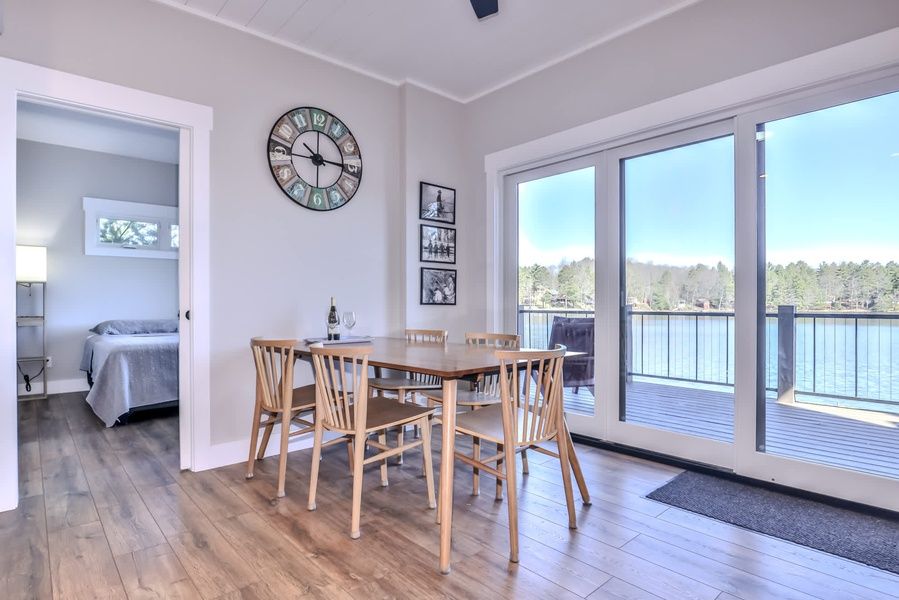 Each of the 3 bedrooms has a king-sized bed and a lake view. On the first floor, the main bedroom has an ensuite bathroom with a corner shower and adjoining laundry room with washer and dryer.