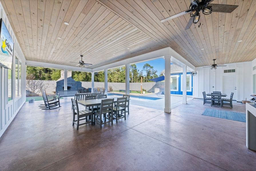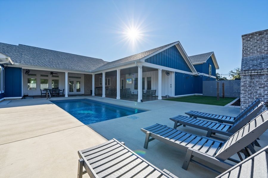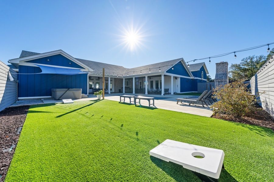 Built specifically for large group vacations with up to 20 people at 4,817 sq. ft with 1,217 sq. ft. of covered porches, this BRAND NEW in March 2023 home is luxurious, spacious and well appointed. Loads of Amenities - Private Pool, Spa, Large Covered Patio with Cooking area, Polywood Furniture for dining, lounging, rocking, TV, Turf areas with Bean Bag Toss and Hammocks, String Lights, Landscaping, Privacy Fence.