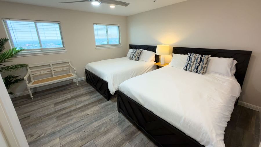Renovated 12/20 - top floor beachfront penthouse *Unbeatable views at Inverness. Cannot get closer to water *Up to 10 people. *Unique 3rd floor pool & Jacuzzi w/ sea views *All new luxe furniture & walk in showers *Walk to Bar Louie, Claytons & Wanna Wanna *Beds galore, superb layout *Garage parking + WIFI Please read & agree to ALL house rules prior to booking Book the newest, tastefully renovated penthouse on the beach at Inverness. Life is short - book the best for discerning tastes without hotel hassles. Full 3 bedroom with bonus bunk room acting as a 4th. Renovations as of Dec 20 of 2025 include, white quartz counters, new appliances, new paint, new furniture (including all bedding) & decor. Owners Love: Sweeping Gulf, Beach & Oceanview. We love having coffee watching the sunrise on the patio The beach with chair and umbrella rentals is just out the property’s gate to the beach. In the evening we love watching the sunsets then just before bed the fireworks from Clayton’s Beach Bar. Sitting outside under the stars is an experience our friends & families don’t forget Notable Features: *3 full bedroom with one of the largest master bedroom suites you will find on the Island incredibly spacious for a condo. Unique bunk bed cutout room with fun slider door for kiddos yet full sized bunk beds *This space allows up to 10 people, very spacious. Kitchen is full equipped with all pots, pans, dishes etc completely open to living room. *Exact bedding is king in master./ Beachside guest bedroom is queen bed / Bayside guest bedroom is 2 queen beds / Bunk room is 2 full sized matresses *High Speed WiFi & smart TVs throughout *Long exterior patio with incredible views from the 11th penthouse level floor *You will not find a patio on the northside of Island with this sort of space nor views this high up, particularly a renovated one. While Inverness is a bit older complex, you simply cannot get closer to the beach. Exit front door, hit the elevator, walk thru private beach entre to property and there is the sand and ocean. No long walks lugging beach gear for your family *The North End of South Padre Island is very up & coming - you can easily walk to Clayton’s Beach Bar & NEW pier; Barry’s Beach Bar; Bar Louie @ the Marriott or go south and walk to the famous Wanna Wanna Beach Bar & enjoy their blended Turbo Pina Coladas or play beach volleyball *Inverness exterior pool ara is on the 3rd floor of the building on the South Side, providing ample sun bathing opportunities. While not heated, you will not find another pool area with this sort of sea & beach views. You can BYOB with a cooler to the pay area, just no glass. Please inquire about pool hours we are here to help! *With our space you will receive one parking spot inside in the elevated garage, with another exterior spot for a 2nd car included with your rental. Our penthouse is not just for impressing your significant others, but the privacy & fun it affords your family is well worth it for an elevated experience. We have what we consider standard convenience items like included bedding, fresh towels & linens,starter packs on guest toiletries plus beginning amount of trash bags, dishwasher pods, dish soap, paper towels & such PLUS a few more things like coffee, de caf, hot tea, creamer, sweetener, filters, non stick cooking spray & salt/peppar. The fully equipped kitchen is ready to go to enjoy & create lasting family memories. One thing many families with young children will want to know is the beach right in front is shallow with a gentle drop while no lifeguard is on duty, it is a nice beach. There is a public beach access point with outdoor showers to clean your piggies & beach gear alike. Great situation for families with young ones The property does have luggage carts for your stuff to get upstairs via elevators. Please do read and agree to all house rules before you book. We are here to help but as we do have a cancel policy in place we don’t do refunds later. We most happy to answer anything you have prior to booking. Thank you for considering us! Property is professionally managed by South Padre Island Trips open 7 days a week, with phones answered 24 hours a day which you will generally not find on the island with a professionally provided cleaning between each stay We do offer veteran & active duty military discounts - please inquire prior to booking on that (not after) to receive. We also have discounts for stays over 5 nights, please inquire prior to booing We provide a door code by 3 pm to the number on file E-door code for contactless check in to/ on the reservation via text message to the number we have on file for you provided your have E signed the rental agreement along with attached a photo of your picture ID. South Padre Trips - Guesty has engaged VacayHome to ensure this listing contains all the information you need and that it is easy for you to book via search engines & online channels. VacayHome is connected directly to the property management system used by South Padre Trips - Guesty which ensures that availability & rates are up-to-date & accurate. When you book, VacayHome processes payment on behalf of South Padre Trips - Guesty and a charge will appear on your statement as "VacayHome". VacayHome will send you a confirmation e-mail that contains all the information you need to prepare for your vacation including arrival instructions. VacayHome has a 24 x 7 team to assist you with any questions or concerns you may have prior to arrival. To access VacayHome, obtain the customer support telephone number or read FAQs, please click on the links at the bottom of this page.