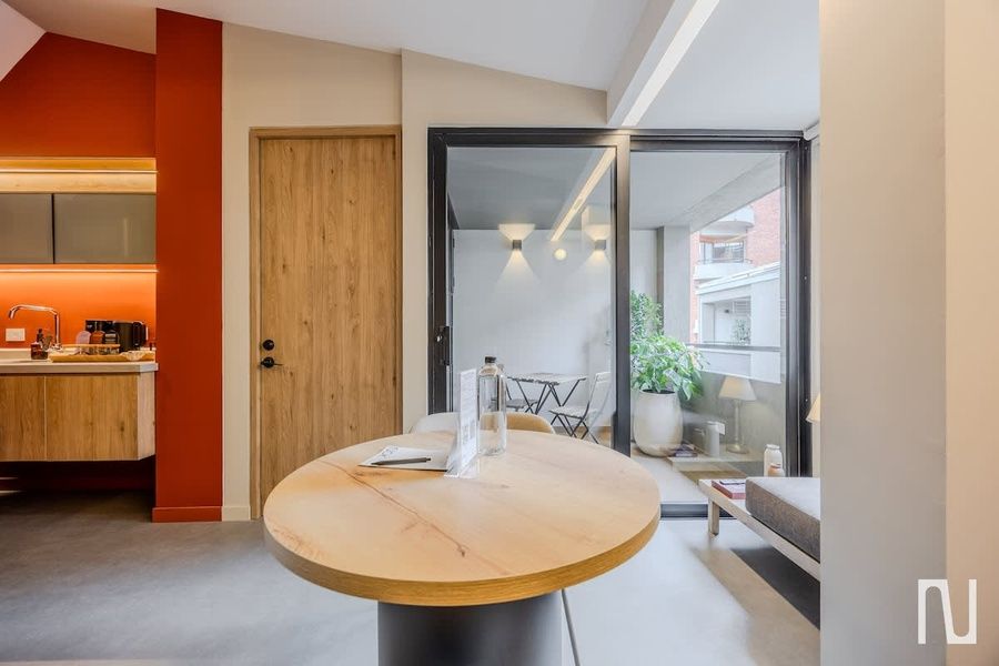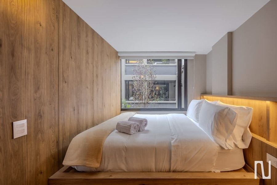 This cozy one-bedroom apartment blends modern design with a calm and elegant atmosphere. It features a comfortable living room, a fully equipped kitchen, and thoughtfully arranged spaces to ensure comfort during both short and long stays. Warm lighting and stylish details create an ideal setting to work, relax, and feel at home. Perfect for guests seeking a pleasant experience. Parking upon availability with aditional cost Note: Construction of a second tower may cause some daytime noise.