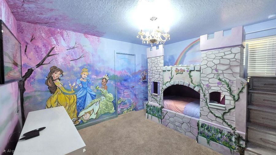 • 1 Bunk bed Princess theme (the two kids themed rooms share Jack and Jill bathroom with shower