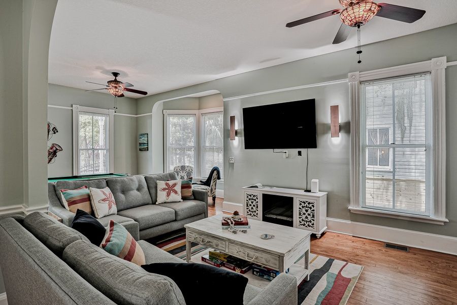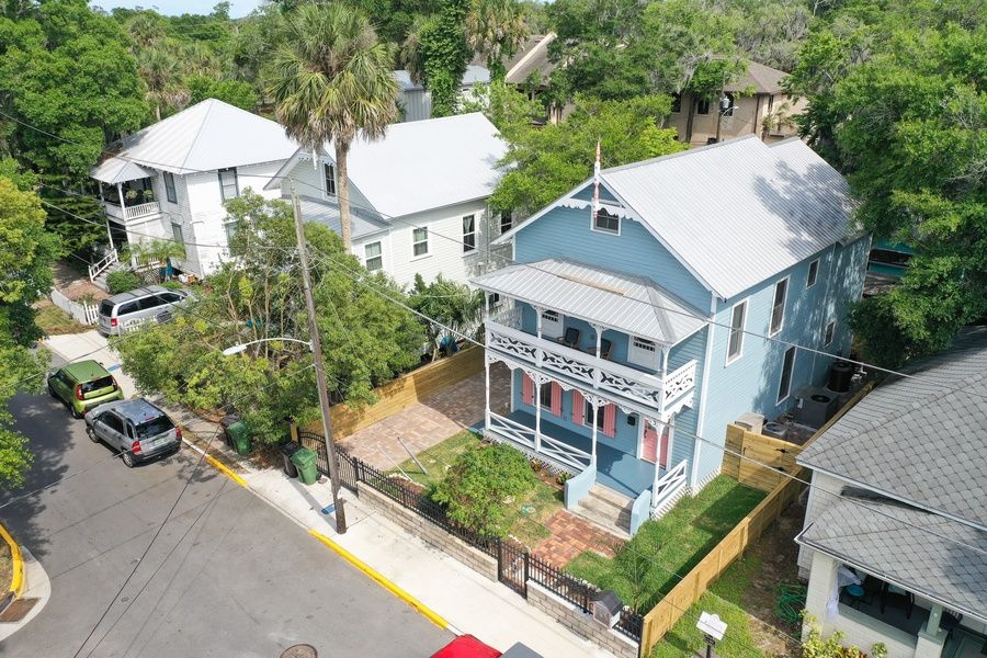 Built in 1910, this iconic Victorian home welcomes you and your guests to the historic Lincolnville District in downtown St. Augustine. This vacation rental is close to fun coffee shops and just a few miles from local beaches (approximately a 10-minute drive). Downtown is within easy walking distance (15 minutes) and Preserved Restaurant, Fish Camp, Ice Plant, and St. Augustine Distillery are approximately a 5-minute walk from home. Spread out over three floors, this three-bedroom delight is brimming with modern amenities and comforts while still retaining its early 20th century charm. The well-equipped, full kitchen includes everything you need to whip up quick breakfasts and lunches or prepare extravagant dinners. Meet up for mealtimes or family game nights at the table for six, and then close out your days in the living area complete with comfortable sofas, a combination pool and Ping-Pong table, an electric fireplace to help set the mood, and a TV for streaming all your favorite channels. Outside in your fenced backyard, cool down or warm up in your private pool or simply take a seat on your furnished patio. This home also features private balconies off the second-floor bedrooms - ideal for enjoying the fresh air and sunshine with a cup of coffee and one of the many provided books.
