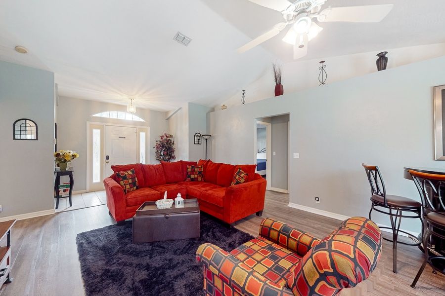 This pleasant Palm Coast home showcases all of your favorite amenities, surrounded by tropical landscaping. From the moment you pull up the drive, you will fall in love with Graystone's impressive curb appeal. Walk inside where you will quickly feel at home amidst the open layout's high ceilings and carefully curated furnishings. Your favorite shows can be effortlessly streamed on the living room's large TV as you unwind on the oversized sofa. When you get hungry, the well-equipped kitchen boasts stainless steel appliances, ample meal prep space, and a Keurig coffee maker complete with K-Cups. Equally comfortable, the home's bedrooms come lined with soft linens, ceiling fans, and plenty of natural lighting. A private washer/dryer and central air-conditioning round out the interior amenities. A true focal point of the property is the private, enclosed pool! Hours of fun are sure to be spent here, splashing, sunbathing, and simply enjoying each other's company. When you aren't hanging out by the pool, check out nearby Flagler Auditorium Performing Arts Center, Bulow Creek State Park, Grand Haven Golf Club, Tomoka State Park, and of course, the area's plethora of diners, shops, and beaches. Things to Know Check-in time: 4:00 PM. Check-out time: 10:00 AM. All guests shall abide by the good neighbor policy and shall not engage in illegal activity. Quiet hours are from 10:00 PM to 8:00 AM. No smoking is permitted anywhere on the premises. This property is located in a residential community.