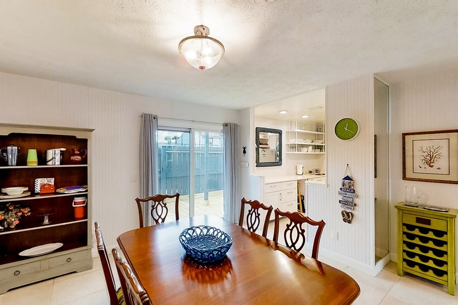 Whether you're starting the morning with a mug of coffee or arriving home from the beach in the afternoon, you'll find a wonderful spot to unwind outside on the fenced patio. Sit down for an alfresco dinner at the table before moving upstairs to the balcony for a glass of wine at sunset.