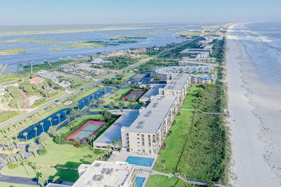 The ocean is right outside your window and beneath your breezy balcony when you stay at Sand Dollar II, our fourth-floor corner beachfront condo on Crescent Beach located in St. Augustine. With the Intracoastal behind you and the Atlantic in front, you get amazing sunrises and sunsets. This condo has the best location in St. Augustine, and the views are so mesmerizing you won't want to leave your private balcony. There is even a full wall window in the primary bedroom, so you can watch the dolphins playing in the water right in front of you year-round, the whales in November, and the turtles nesting all summer long - all this while having breakfast in bed. This place truly is a beach lover's paradise. Nestled on a strip of coastline between ocean and waterway, Sand Dollar II is just right for your next northeast Florida vacation. St. Augustine is just minutes away by car, and Daytona is right down the road as well. Orlando is less than two hours away if you are tempted to make a day trip to Disney World. The Intracoastal is a wildlife paradise, with walking trails and the perfect setting for canoeing, kayaking, and boating. And then there's Crescent Beach, the finest in the St. Augustine area, with uncrowded sugary-white sands, great shelling, biking, and surfing, and an abundance of dolphins, pelicans, and other exciting sights. And the best place to view all this beauty is the balcony at Sand Dollar II. You can reach it from the living room and from the primary bedroom (which means you can slip out at night for a quick look at the moonlight on the water and the sound of the surf.), and we've placed some casual furnishings and a small table out there. The balcony is covered, but sunlight slants in at various times of day, so you can soak up rays or enjoy cool shade - your choice. When it's time for indoor activity, step into the light, nicely appointed living and dining area of Sand Dollar II. Soft carpeting and comfortable leather furnishings, including a large flatscreen with cable and DVD player, await you here. The dining table is just adjacent to the living area, too, so you can set up games and puzzles here to keep the group entertained. And the view comes with you through bright windows and sliding-glass doors. This is a corner unit so you can look directly down on the pool too. The Atlantic Ocean, the Intracoastal, and the Pool are all visible from your private balcony. Although you'll probably be dining on amazing seafood during your St. Augustine stay, when it's time to eat in, you'll appreciate how well-equipped our kitchen is. The cupboards are bursting with cookware, dishes, utensils, glasses, the works! Add a few groceries and you're all set, whether you're composing elaborate sauces and spreads or simply throwing mac 'n cheese together for the kids. You won't have to dash out to buy a colander or more cups when you stay at Sand Dollar II. And while we're on the subject of being well equipped, the condo also offers a full-size washer and dryer for your use, so you can pack light for this trip. They are in the utility room, along with such useful items as beach chairs and other necessaries. It's so nice to stay in a fully furnished home instead of a hotel at the beach. One of the best features of this condo is the primary suite. The bedroom is quite spacious, especially considering it has a king-sized bed, dresser, and standing mirror with a flatscreen TV. One wall facing the ocean is entirely made out of glass and the other wall is a sliding glass door out to the balcony, with enviable ocean views. The en-suite bath is a treat too. The second bathroom, shared by the other two bedrooms and the living area, offers both a tub and shower option. And all towels are provided, as well as linens for every bed. The second bedroom contains a queen-sized bed, TV, and a sliding glass door to another balcony for the intercostal and sunset views. It's roomy as well, and very restful. The third offers two full beds and another flatscreen TV. No arguing over what to watch when everyone has their own set. Best of all, at Sand Dollar you have resort amenities in addition to the ocean and Intracoastal. A huge oceanfront swimming pool is available for splashing and sunning, and lighted tennis courts mean that you can swing the racquet in the cool of the evening. You'll love it here - the condo complex is family-friendly and beautifully maintained. Come stay at Sand Dollar II very soon. THINGS TO KNOW. Casago - First Coast has engaged VacayHome to ensure this listing contains all the information you need and that it is easy for you to book via search engines & online channels. VacayHome is connected directly to the property management system used by Casago - First Coast which ensures that availability & rates are up-to-date & accurate. When you book, VacayHome processes payment on behalf of Casago - First Coast and a charge will appear on your statement as "VacayHome". VacayHome will send you a confirmation e-mail that contains all the information you need to prepare for your vacation including arrival instructions. VacayHome has a 24 x 7 team to assist you with any questions or concerns you may have prior to arrival. To access VacayHome, obtain the customer support telephone number or read FAQs, please click on the links at the bottom of this page.