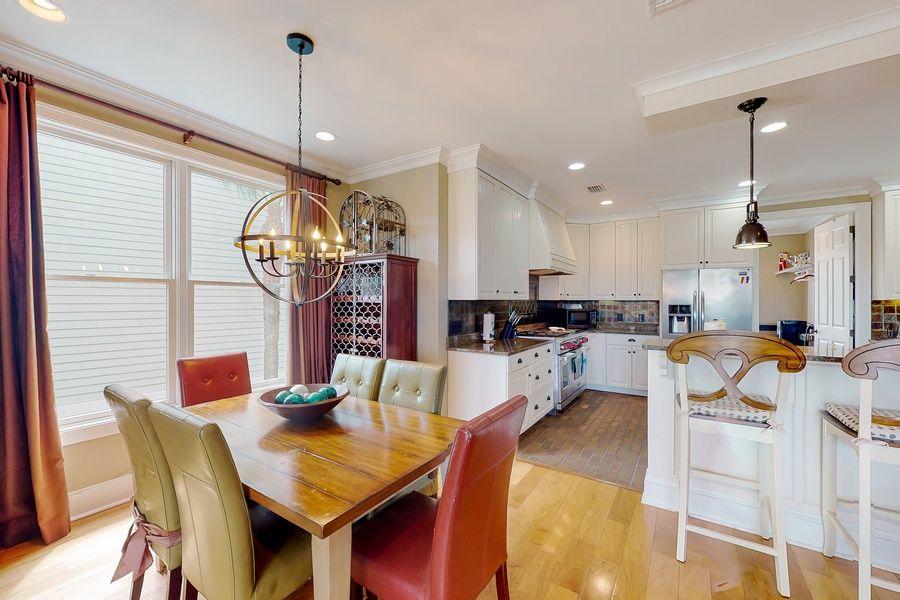 Absolutely stunning inside and out, Barrier Island Getaway is just the place to make lasting memories with friends and family in the heart of all the action. Whether you plan to hit the beach, shop at local boutiques, or grab a bite to eat at one of the many eateries on the island, there will be no delay in filling each day with fun. Plus, you can keep the excitement right at home base with the private pool and grassy lawn area. Inside, three spacious floors await to give larger groups and families room to spread out. The middle floor will be the hub for entertaining, with an open living area complete with a smart TV for streaming movies and plenty of seating. The adjacent full kitchen has everything needed to whip up tasty meals and snacks after a full day of fun. The kiddos will have no trouble staying entertained either with high-speed WiFi and a game room outfitted with a ping-pong table and air hockey. Extra perks include central air-conditioning and a private washer/dryer. This is your ticket to sweet relaxation, so book your stay today! THINGS TO KNOW Streaming is available with guests' own accounts. The fireplaces are not operational.