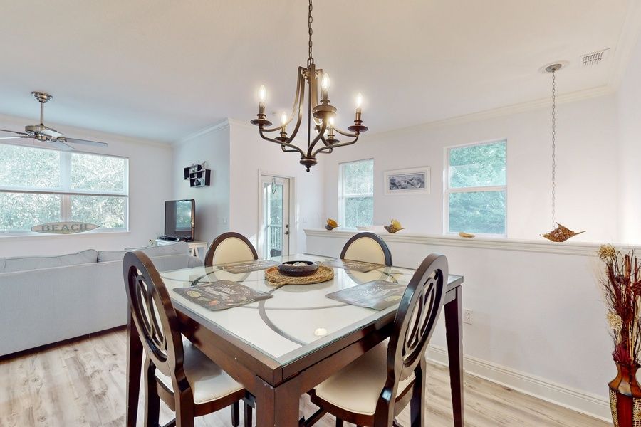 Situated in the Tidelands community of Palm Coast, this immaculate 2BR/2BA townhome offers a delightful coastal oasis. Drive less than 10 minutes to the ocean, or soak up the sun by one of two sparkling pools. Enjoy access to a plethora of resort amenities, including walking trails with views of the Intracoastal Waterway. LIVING AREA After a day at the beach, watch favorite shows on the 50” cable TV in the light and airy living area. Two plush sofas provide ample seating. KITCHEN and DINING The chef in your group will appreciate the modern kitchen, equipped with a full suite of stainless steel appliances. When your culinary creations are complete, dine together at the table set for four. BEDROOMS and BATHS This townhouse sleeps up to four guests between the two bedrooms. Find quiet privacy in the master suite, furnished with a comfortable king bed and 32” cable TV. An en-suite master bathroom is configured with a walk-in shower. A second bedroom features a queen bed and cable TV. A second bathroom has a tub/shower combination. OUTDOOR AREAS Sip morning coffee on the second-floor screened balcony, furnished with seating for two. Take a refreshing swim in one of two shared pools. (The pool closest to your rental is heated.). Enjoy access to a variety of luxe amenities, including a hot tub, tennis and basketball courts, an outdoor shower, and walking trails throughout the complex. EXTRA AMENITIES and MORE DETAILS Extra perks include complimentary Wi-Fi and an in-unit washer/dryer. Parking is provided for two cars (one in the driveway and one in the garage); street parking is not permitted. The living areas and bedrooms are all located on the second floor, accessed via one flight of stairs from the garage and entryway (please see floor plan in the photos for details). THE LOCATION Within a 10-minute drive of the beach, this townhome makes exploring the Florida coast a breeze! Drive 6 miles north to visit Washington Oaks Gardens State Park. Or travel 8.3 miles south to check out the Graham Swamp Conservation Area. An abundance of shops and dining options are within a 20-minute walk in the nearby European Village complex. Make the easy drive to a host of iconic Florida Coast destinations, including Daytona Beach and St. Augustine, both within a 40-minute drive. Orlando's theme parks are less than 2 hours away by car.