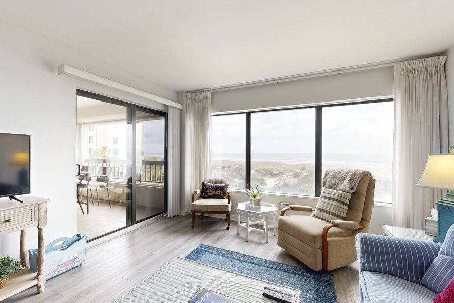 Wake up each morning to a commanding view of the Atlantic Ocean and the sandy dunes at this one-bedroom, oceanfront condo at Amelia Surf and Racquet. This third-floor condo is the perfect place to relax and unwind, as you'll be steps from the pristine beach, the community pool, and four clay tennis courts, and within easy walking distance of the Ritz-Carlton. Inside, you'll find an attractive, air-conditioned living space with a fully appointed kitchen, a private washer/dryer, and free WiFi, among other at-home comforts. There's a shared oceanfront balcony as well, which is accessed through both the living room and the bedroom. Things to Know Amelia Surf & Racquet offers open parking with the exception of 4th of July weekend.