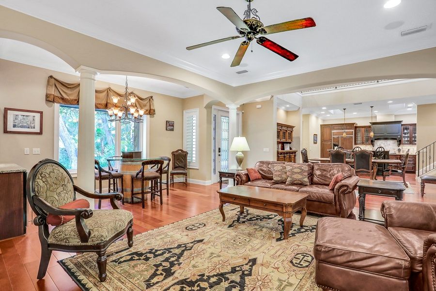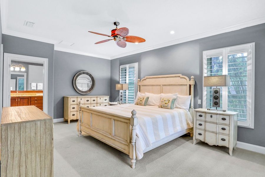 Surround yourself with comfort and luxury at this home in the gated resort community of Amelia Island Plantation. This home includes a tropical screened back terrace with a private saltwater plunge pool and a spillover spa. Features include Pella windows, a 30-foot ceiling with a cupola, clerestory windows that allow for great ambient light, concrete-block exterior walls, Brazilian cherry floors, and three-panel disappearing doors that lead to the travertine pool terrace (with an option to heat the pool). Enjoy an outdoor kitchen and a top-of-the-line indoor kitchen with a breakfast bar that opens to the formal dining space. At night, you'll find that all of the bedrooms have en suite bathrooms, including the dual primary suites. A fifth bonus space has a balcony with a view of the pool below. Things to Know Check-in time: 4:00 p.m. Check-out time: 10:00 a.m. All guests shall abide by the good neighbor policy and shall not engage in illegal activity. Quiet hours are from 10:00 p.m. to 8:00 a.m. No smoking is permitted anywhere on the premises. The fireplace is not operational. The pool is serviced every Tuesday, yard/landscaping serviced every Friday. Trailers and motorcycles are prohibited in this community. The pool can be heated for an add on feature for USD400 fee.