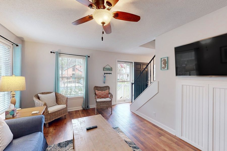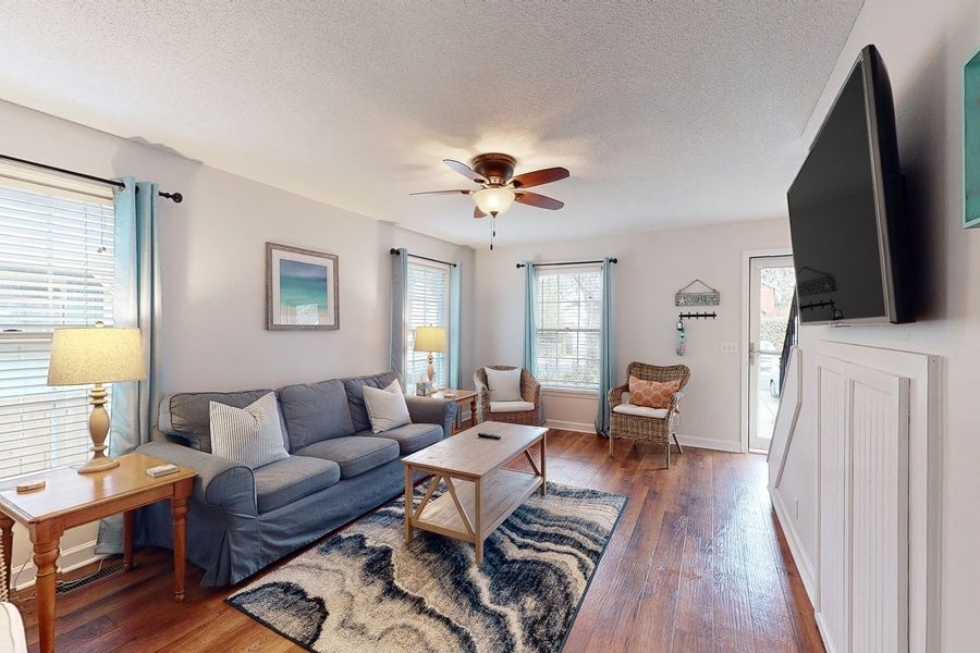 Escape to a southern vacation unlike any other when you find tranquility at this home on St. Simon's Island. Tour the island and take in the sights of Neptune Park, the Lighthouse Museum, Blythe Island Regional Park, Summer Waves Water Park, or Jekyll Island Golf Club. Spend your days on the warm Atlantic ocean with fun rentals like paddleboarding, sailing, surfing, and deep-sea fishing. Upon entry, you'll be met with a bright interior and a warm welcome throughout the three-bedroom home. Relax and make yourself at home by resting on the plush furniture, streaming your favorite movies on the large TV, or sharing a board game or home-cooked meal at the dining table. Hobby chefs will love preparing grand meals and beach picnic snacks in the sophisticated galley-style kitchen, equipped with updated appliances and all the cupboard room you'll ever need. Comfortable beds and spacious bedrooms ensure that everyone will receive a restful night's sleep from the day's adventures. Enjoy the quaint yard with brunch on the deck, or stargazing when the day is over.