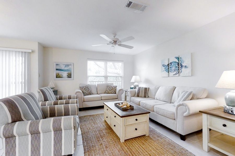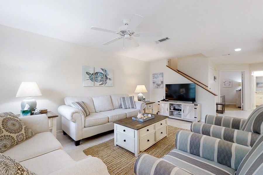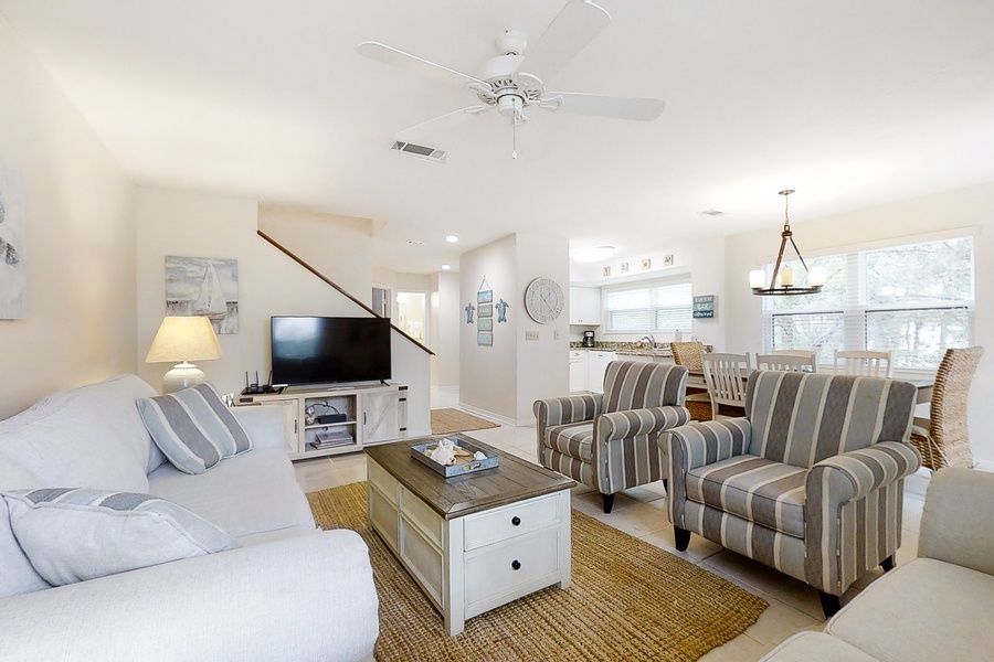 This newly renovated townhouse is located near the Ritz Carlton in the gated community of Summer Beach Village, only a matter of steps from the community pool and Amelia Island's beautiful beach. You'll also be mere minutes from the historic town of Fernandina and its many restaurants and charming shops! Step inside to find brand-new furniture and new mattresses throughout the home. Enjoy a fully appointed kitchen, ample seating in both the living room and the dining room, free WiFi, and a private washer/dryer for your convenience. There are two bedrooms - including the primary bedroom - upstairs, as well as one guest room downstairs. Things to Know Full kitchen No pets allowed