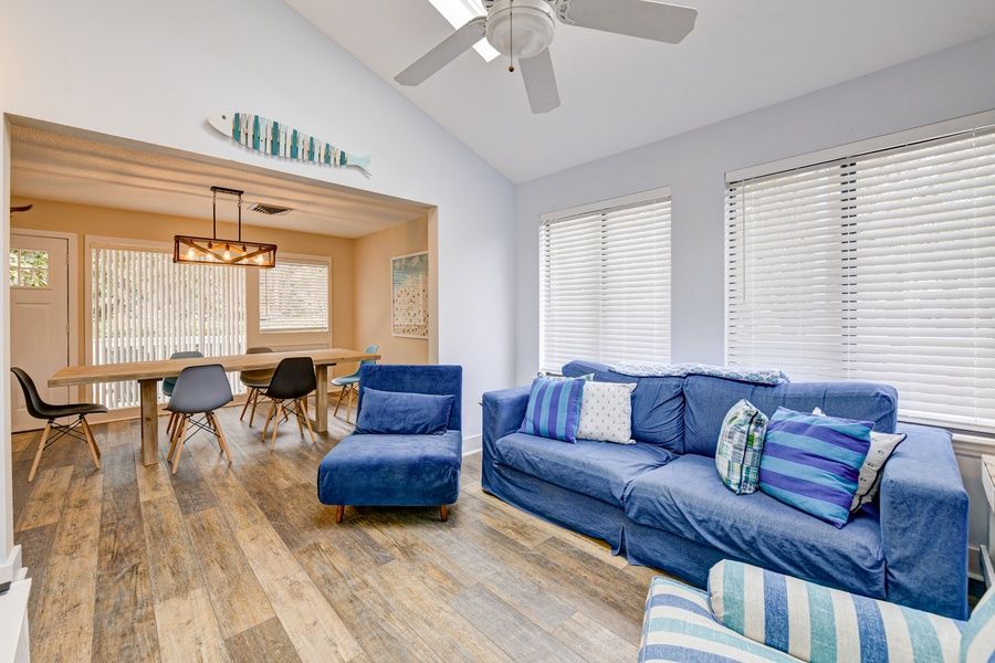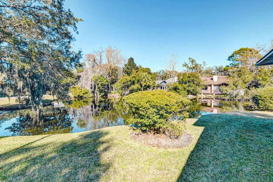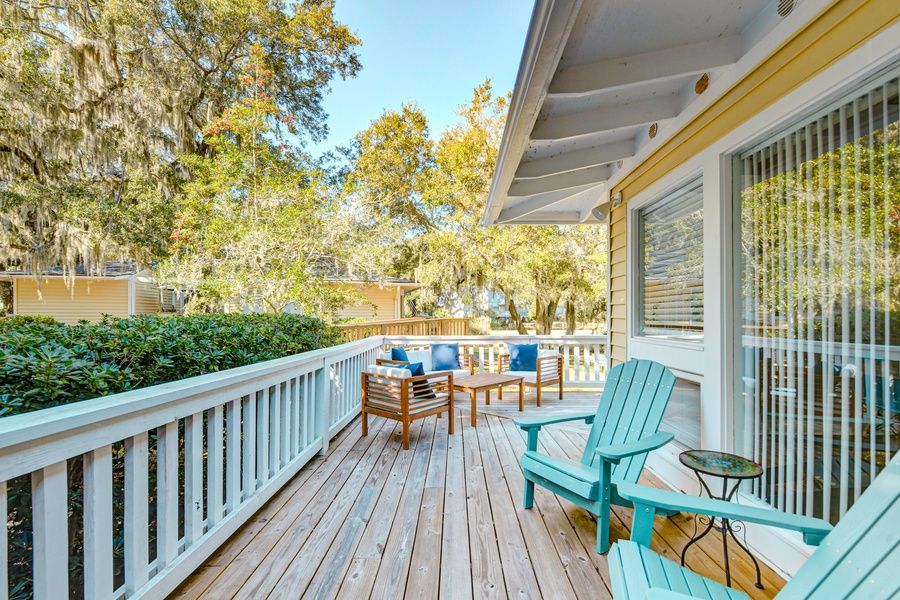 The perfect escape for those who love to golf, or who simply want to explore the St. Simons Island area, this sleek and comfortable condo is the perfect place to put down your roots. Explore all St. Simons Island has to offer - such as its salt marshes, beaches, and many parks. Or, practice your golf game, right from the comfort of your stay! When it's time to eat, check out one of the local southern eateries, serving up delicious steak and seafood options. Inside your retreat, you'll find a comfortable main living room complete with ample seating and a TV. From here, you can easily access the well-equipped kitchen and dining room. The kitchen boasts stainless steel appliances, a center island, and ample meal prep space. Resisting the urge of eating out? Whip up something delicious in this space and enjoy it at the breakfast bar. Both of the bedrooms are spacious and bright. Need to work from home? Utilize the work desk in the primary bedroom. For your total convenience, be sure to use the private washer/dryer when your clothes need to be refreshed. Outside, a spacious deck awaits with gated access, preventing furry companions from wandering. Enjoy their company while you look out over the sweeping hills and waterways of the golf course. THINGS TO KNOW Streaming services available with guests' own account(s).