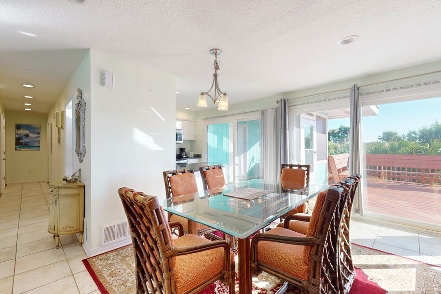 Located mere steps from St. Augustine Beach, this well-appointed, family-friendly home is perfect for a large family, two small families, and even groups of friends or couples. The location makes it the ideal home base to enjoy sun-filled days at the beach and take advantage of everything St. Augustine has to offer. You can walk anywhere! Spend fun evenings on the spacious deck planning your next adventures or enjoying meals alfresco at the outdoor dining area. Then, step back inside the air-conditioned living room and stream your favorite series or movies on the smart TV. There's no need to miss your favorite series' season finale anymore! If you're feeling hungry after spending hours at the beach sunbathing or swimming, come back home to a well-equipped kitchen that will surely make cooking a breeze. Stainless steel appliances, including a dishwasher, will help you surprise your loved ones with mouth-watering homemade meals. THINGS TO KNOW Fireplace is non-operational